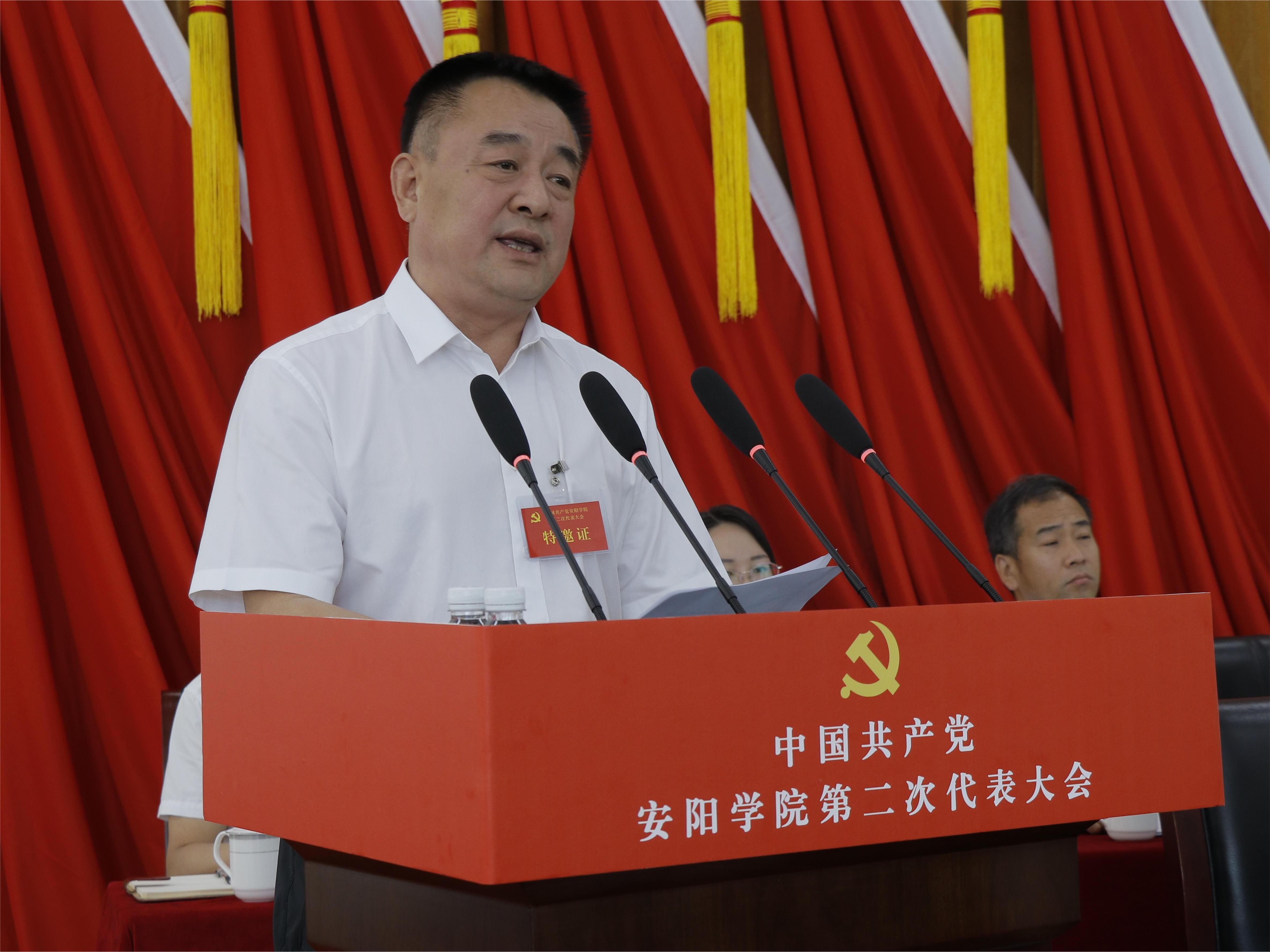 中国共产党Beat365官方网站第二次代表大会,是在中华人民共和国成立75周年,全党开展党纪学习教育之际,在Beat365建设省内一流、国内知名,特色鲜明的高水平应用型大学进入新阶段的关键时期,召开的一次承前启后、继往开来的大会。大会的主题是:高举中国特色社会主义伟大旗帜,以习近平新时代中国特色社会主义思想和党的二十大精神为指导,深入学习贯彻习近平总书记关于教育的重要论述和视察安阳重要讲话精神,全面加强党的建设,贯彻党的教育方针,立德树人、守正创新,凝心聚力、追求卓越,为建成省内一流、国内知名,特色鲜明的高水平应用型大学而努力奋斗!为加快推进教育强省建设、全面推进社会主义现代化河南建设、实现中华民族伟大复兴作出Beat365官方网站应有的贡献!
