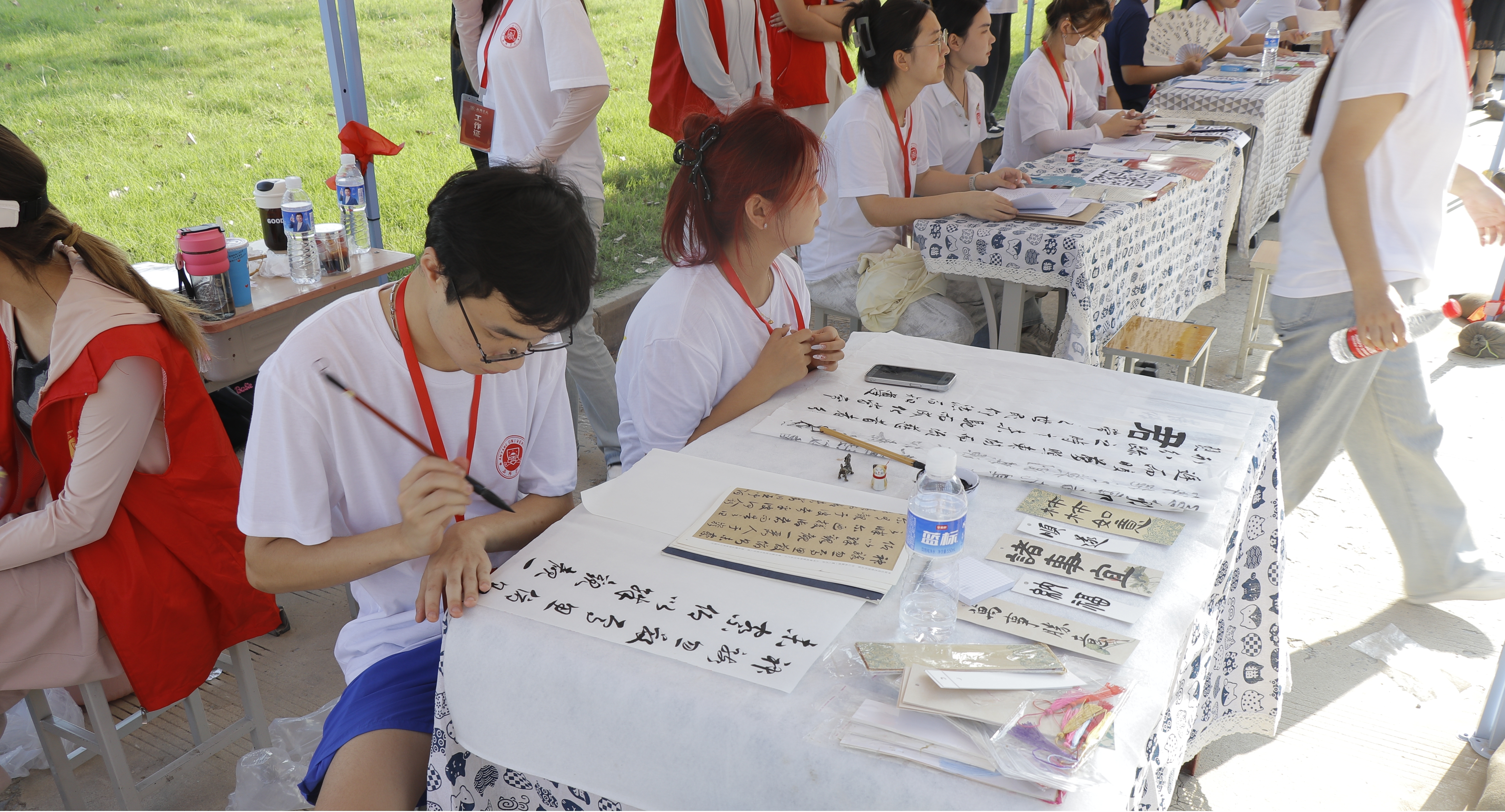 志愿者现场书写新生寄语特色书签