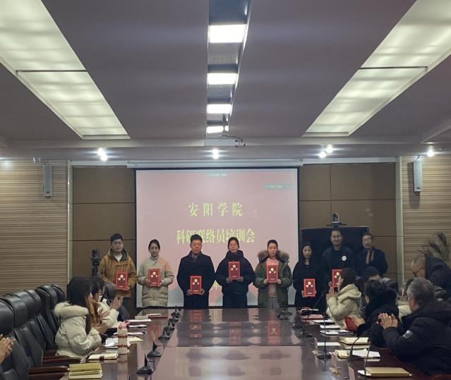 王爱民代表学校为科研联络员颁发了聘书,对各位联络员起到了巨大的鼓舞作用。