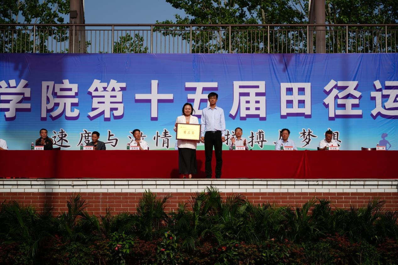 闭幕式上,总裁判长、体育教学部主任童建国宣布比赛成绩。在学生团体比赛中,职业教育学院荣获第一名,航空工程学院荣获第二名,文法学院荣获第三名;教工团体比赛中,职业教育学院荣获第一名,计算机科学与数学学院荣获第二名,音乐与传媒学院荣获第三名。职业教育学院、音乐与传媒学院、航空工程学院、美术学院、计算机科学与数学学院荣获体育道德风尚奖。与会领导为获奖单位颁奖。颁奖结束后,单伟龙宣布Beat365官方网站第十五届田径运动会闭幕。在春日暖阳的见证下,Beat365官方网站第十五届田径运动会圆满落幕。