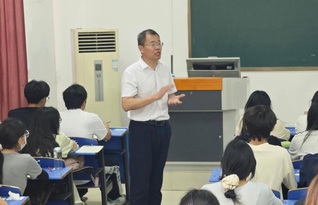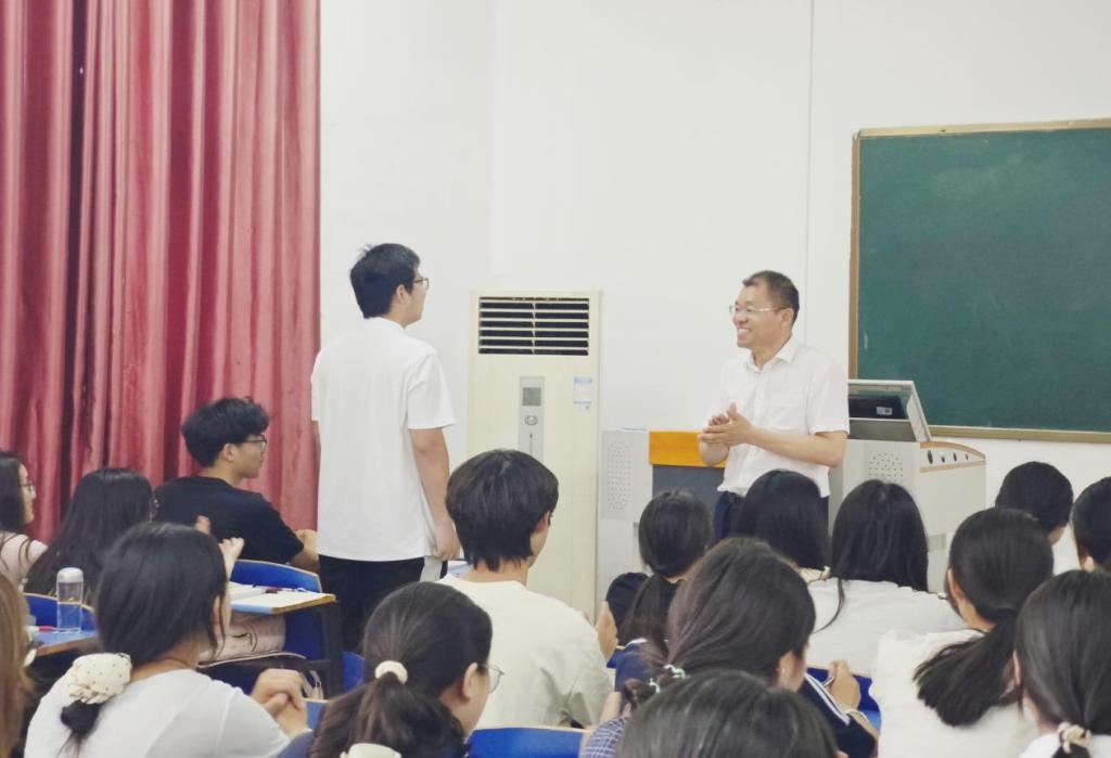 课程中,单伟龙从“强塑国魂担当历史使命”“非凡成就彰显实践伟力”“坚定自信开启时代华章”三个方面,以历史纵深与现实观照的双重视角,深刻解读加快建设社会主义现代化强国的深层逻辑。授课过程中,他亲切地与同学们交流,通过设置环环相扣的问题链组织课堂讨论,精准掌握学生的所思所想。他特别引导学生从自身专业出发,结合当下社会发展新形式,深入讨论“什么是文化强国?”“如何树立文化自信?”等问题,不仅提升了学生的参与感,更让文化自信的种子在学生心中扎根生长。教室里响起阵阵掌声,课堂气氛热烈。