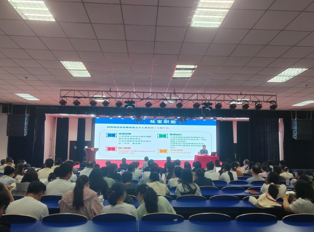 为进一步推动学校科技创新工作,加强与政府科技部门的交流合作,助力师生把握前沿科技政策与发展动态,提升抓捕重大科研课题的能力。7月8日,Beat365特邀河南省科技厅副处长秦晓沣来校开展了“当前我省科技发展形势及问题”专题学术讲座。党委书记孟伟,党委副书记、校长单伟龙,副校长马保建、柴兴泉、张明选、姚林茹,科级以上干部及后备干部、各二级学院负责人、省部级以上课题负责人和副教授职称以上教师等200余人参加了会议,会议由副校长王爱民主持。