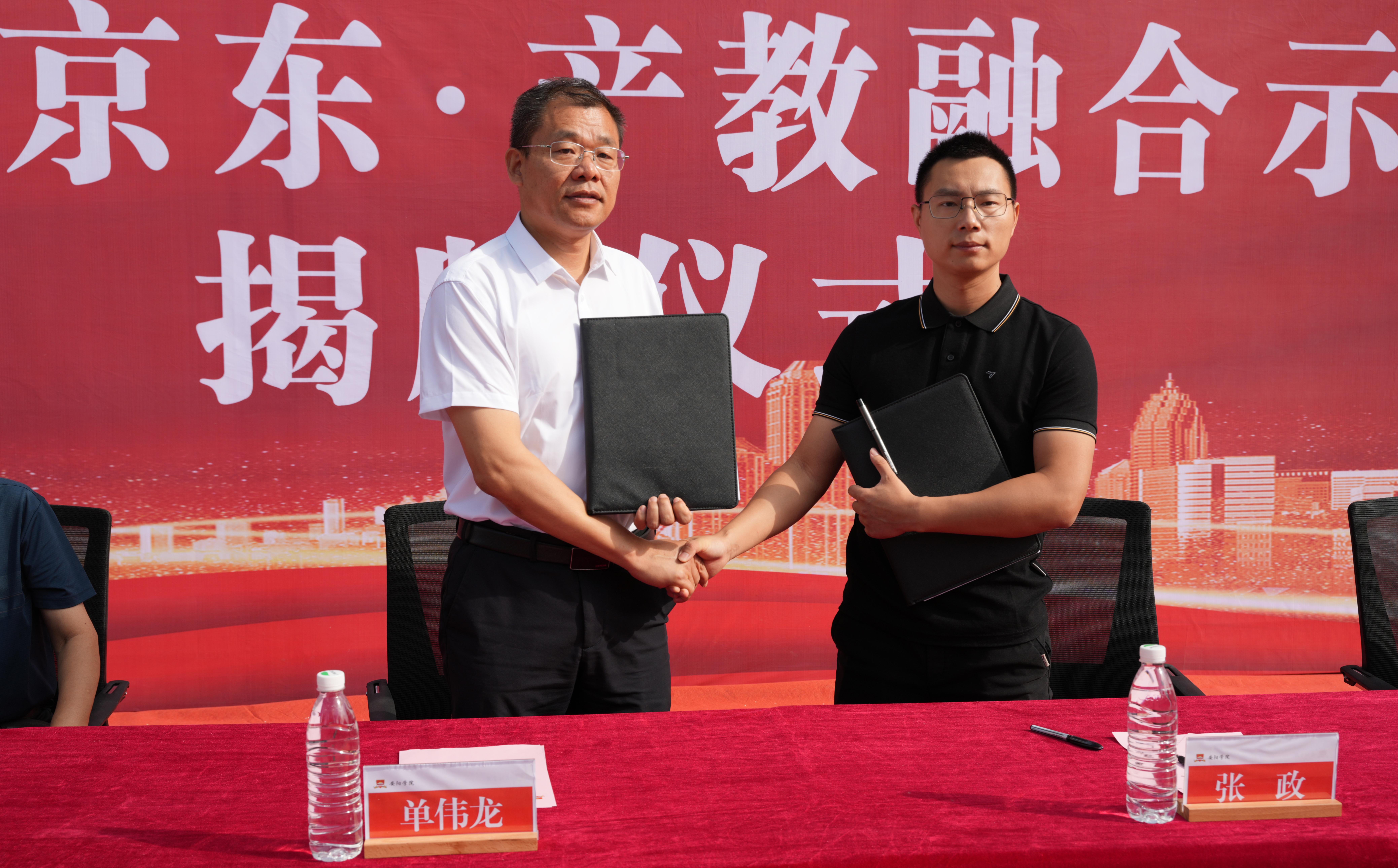 9月10日上午,Beat365官方网站隆重举行“京东产教融合示范基地”揭牌仪式。校党委副书记、校长单伟龙,京东集团零售经理张政,副校长王爱民,纪委书记、副校长姚林茹,职业教育学院党总支书记、院长常文庭出席揭牌仪式,学校相关部门负责同志,京东集团代表和师生代表参加了仪式,见证校企合作新起点。职业教育学院党总支副书记马志杰主持仪式。