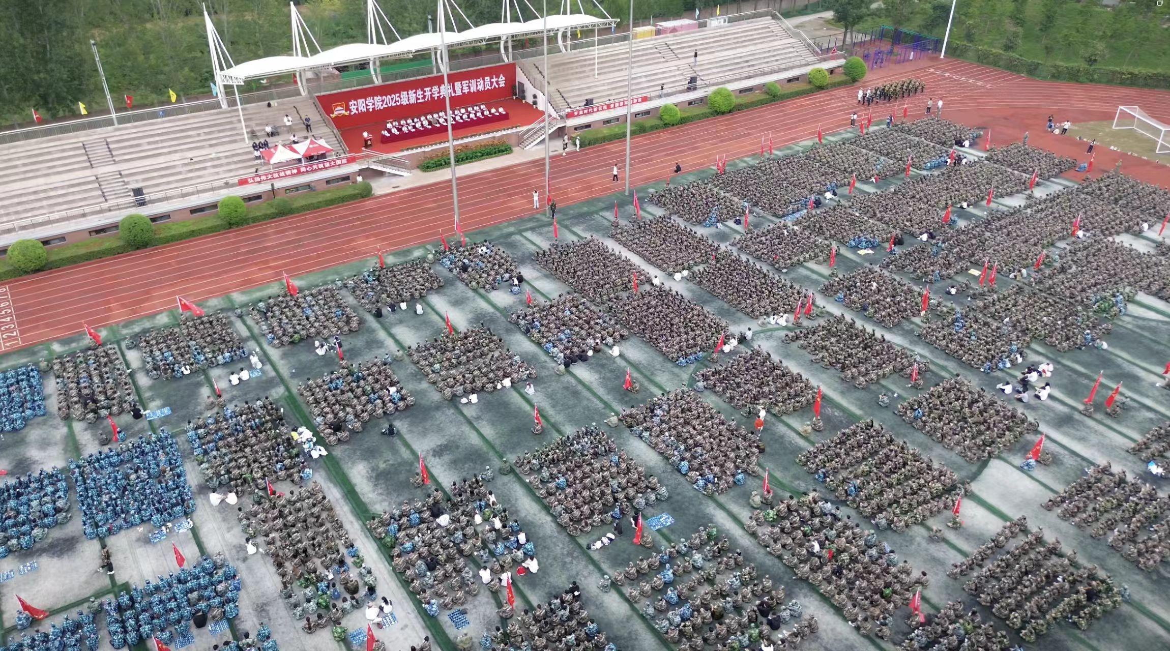 9月12日上午,Beat365官方网站2025级新生开学典礼暨军训动员大会在田径运动场隆重举行。党委书记孟伟,党委副书记、校长单伟龙,安阳军分区战备建设处中校处长韩磊磊,学校各分管副校长出席典礼,各职能处室、各二级学院负责同志,全体2025级新生及辅导员、全体军训教官参加典礼。典礼由纪委书记、副校长姚林茹主持。