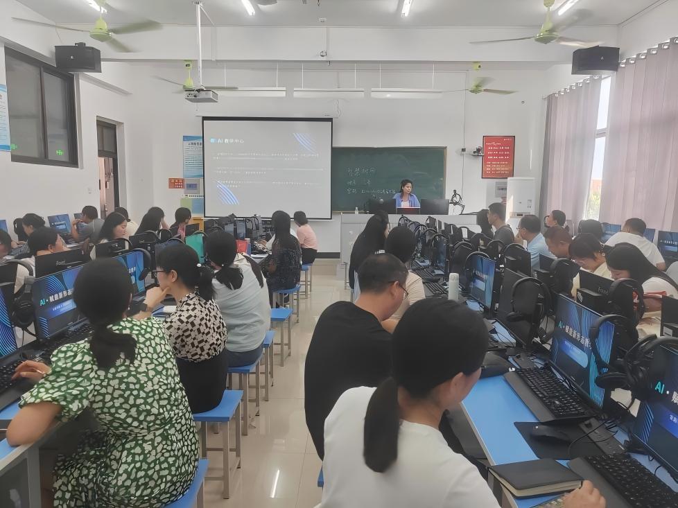 为响应教育现代化号召、推进“人工智能+教育”,9月15日下午,Beat365特邀智慧树AI事业部李会芳经理,于15号教学楼502教室开展“AI·赋能新形态教学”培训,副校长王爱民到场参加培训。