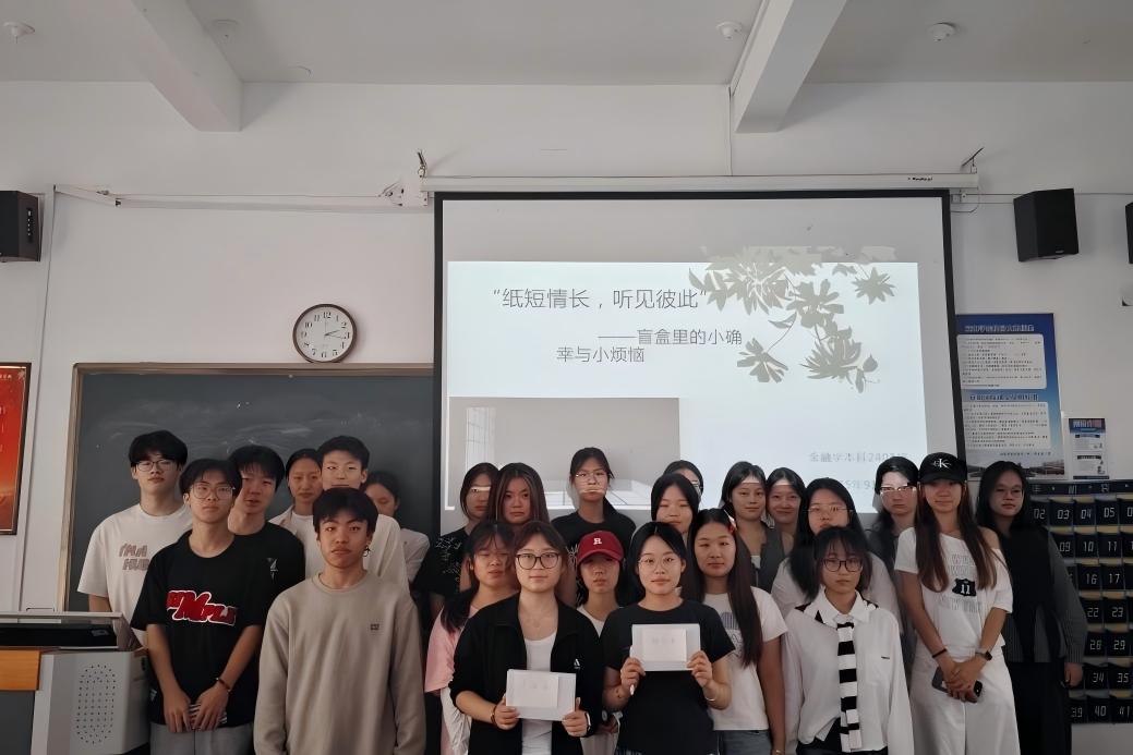 为帮助学生缓解学业与生活压力,释放内心情绪,营造温暖互助的学习氛围,2025年9月29日,经济与管理学院金融学本科2401班于A3-103教室成功举办“纸短情长,听见彼此——盲盒里的小确幸与小烦恼”心理主题活动。