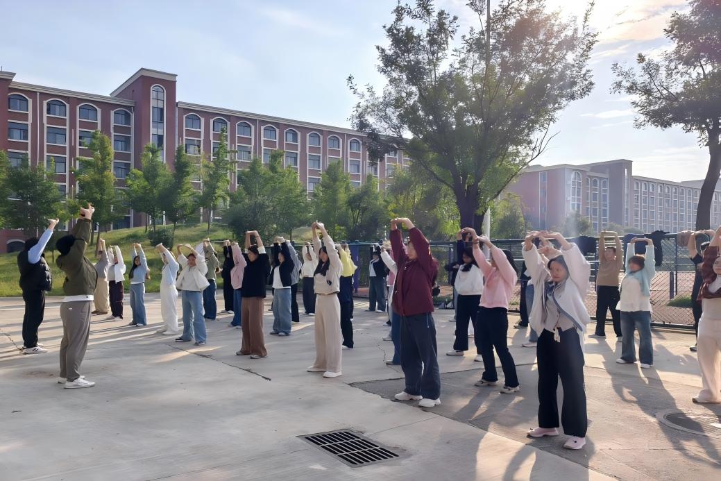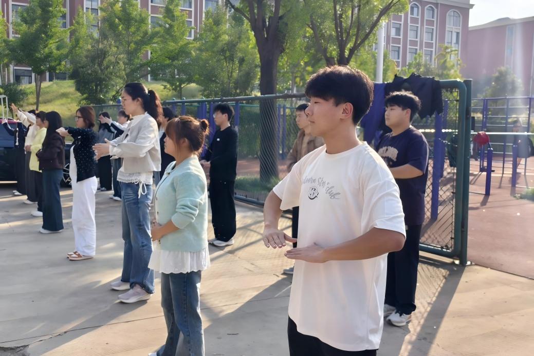 为应对秋季传染病高发风险,传承中华优秀传统文化,2025年10月14日,文法学院组织学生在校田径场东南侧开展了八段锦功法健身教学活动。通过文化讲解、现场教学、集体练习等环节,学生们掌握了传统养生功法,筑牢了秋季健康防护屏障,实现“健康守护”与“文化传承”的双重成效。
