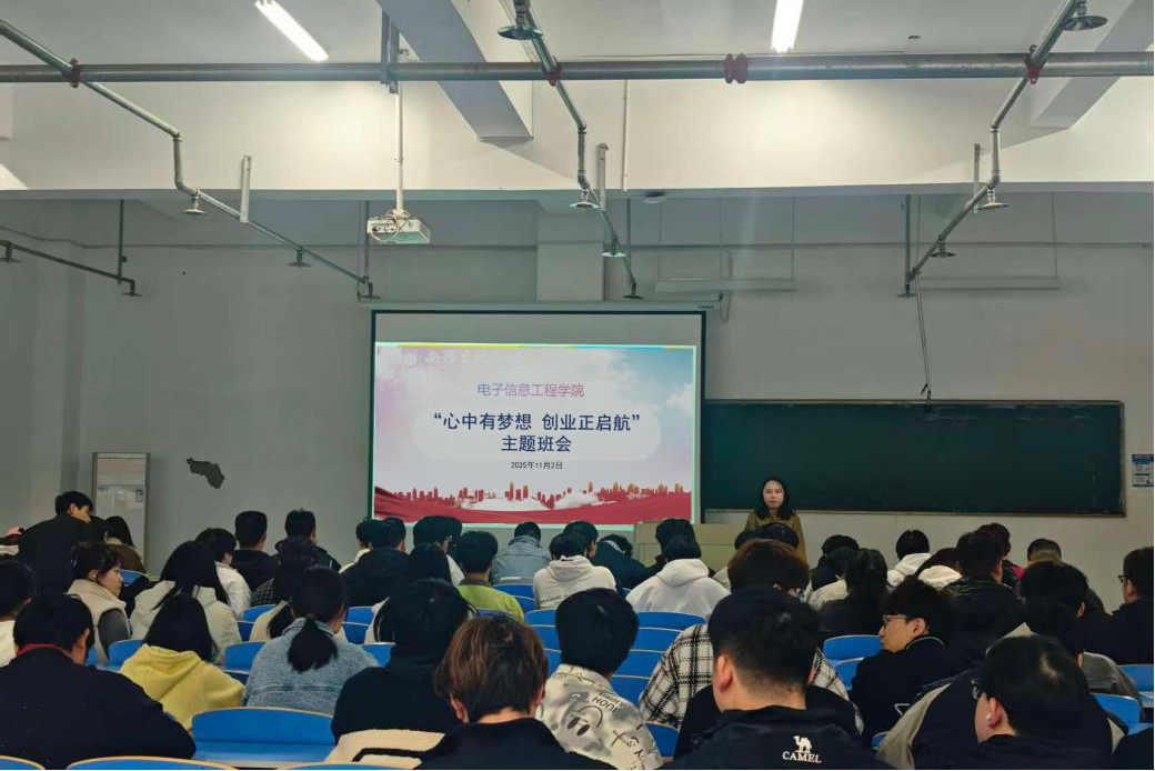 为引导学生明确创业目标,树立敢想敢为的信念,为未来职业规划奠定基础,电子信息工程学院于2025年11月2日在图书馆209教室召开了“心中有梦想,创业正启航”主题班会,会议由思政辅导员陈秋雨主持。