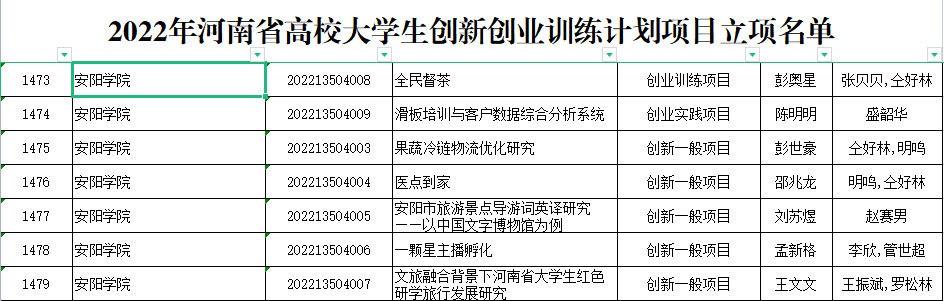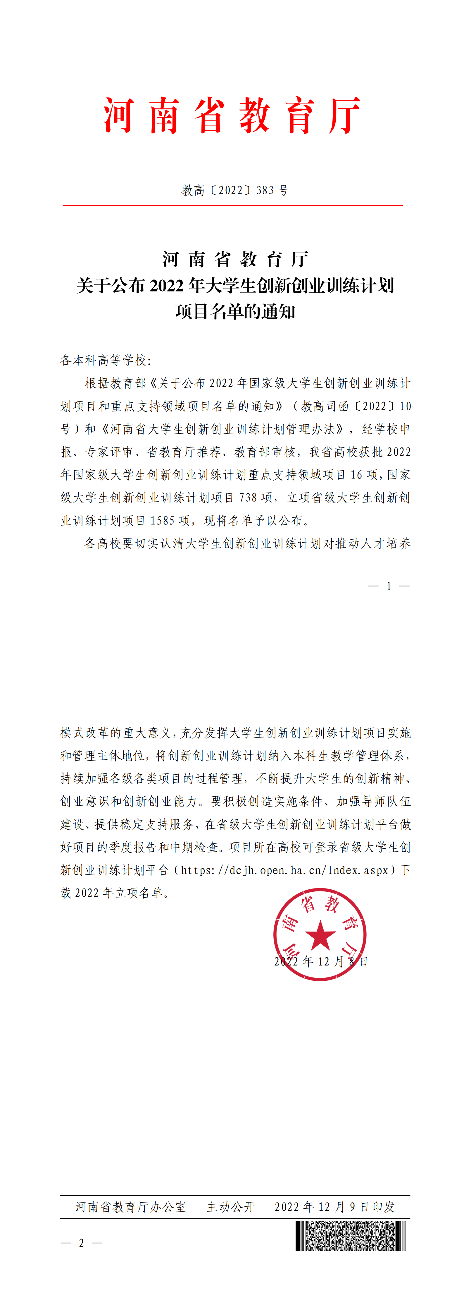 关于公布2022年大学生创新创业训练计划项目名单的通知
