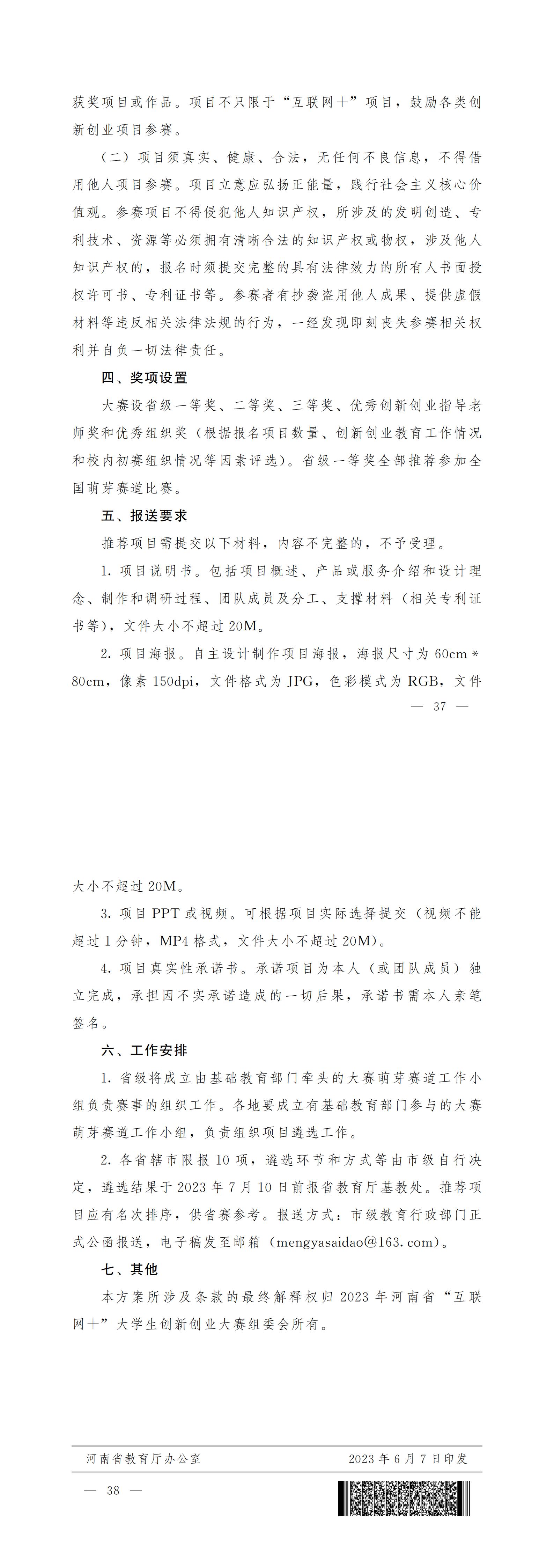 关于举办2023年河南省“互联网+ ”大学生创新创业大赛暨第九届中国国际“互联网+ ”大学生创新创业大赛河南赛区选拔赛的通知
