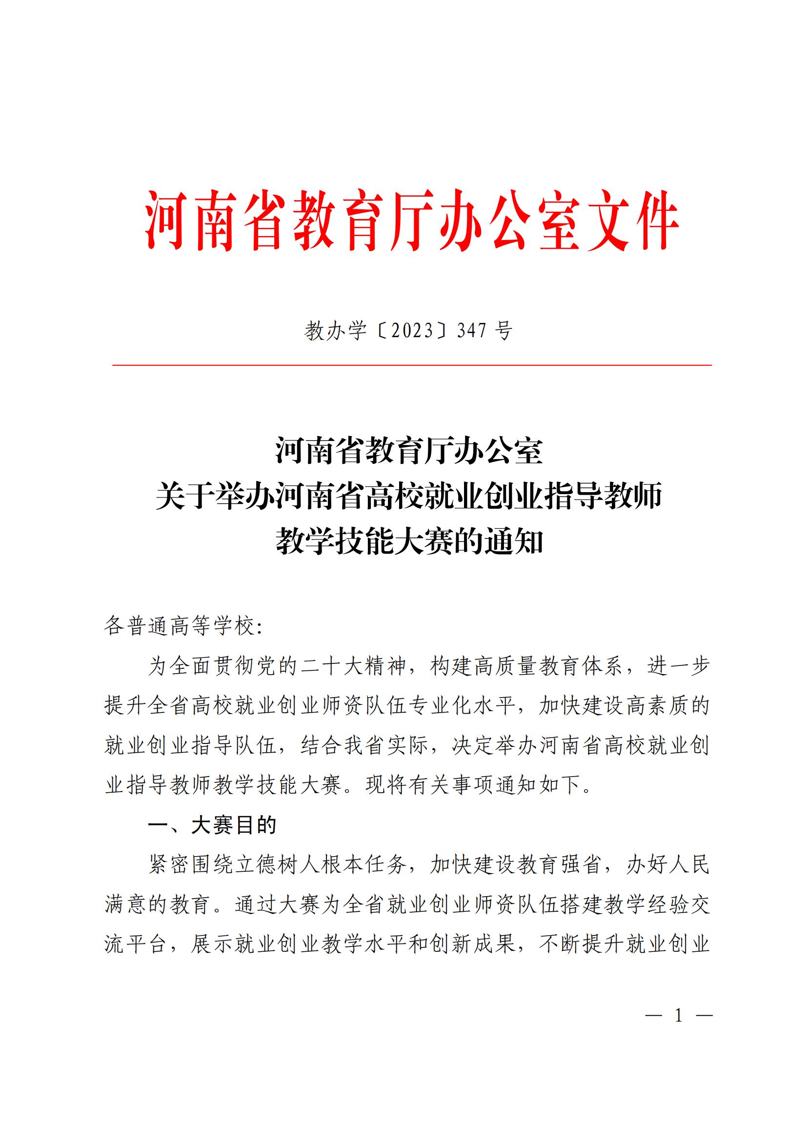 关于举办河南省高校就业创业指导教师教学技能大赛的通知
