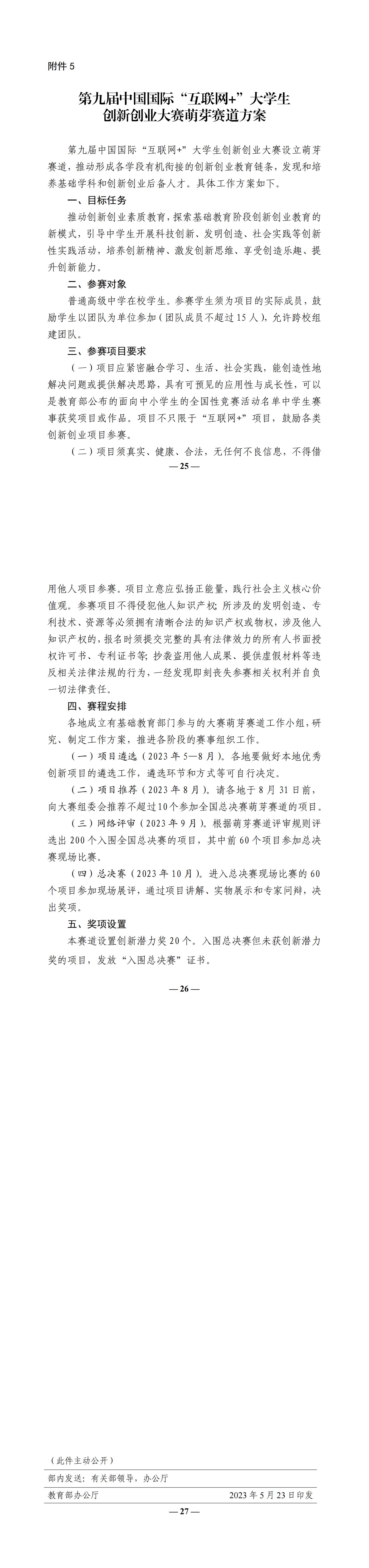教育部关于举办第九届中国国际 “互联网+”大学生创新创业大赛的通知