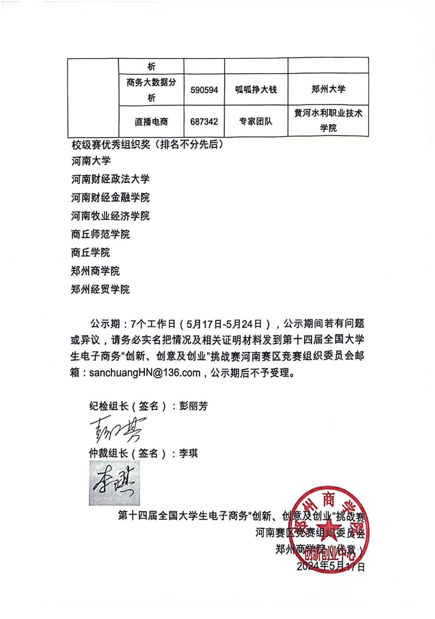 第十四届全国大学生电子商务“创新、创意及创业”挑战赛河南赛区省级选拔赛拟获奖名单公示.pdf