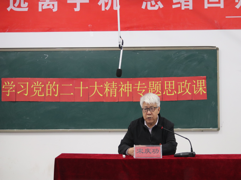 宋庆功教授从“党的二十大重大意义,认真学习、自觉贯彻科教人才创新战略,积极进取、勇毅前行、为科技创新贡献力量,不忘初心、担当作为、自觉宣传贯彻二十大精神”四个方面带领上课学生学习了党的二十大精神。