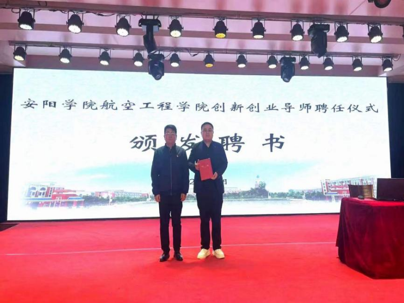 讲座开始前,航空工程学院党总支副书记吴海彬为安阳金霖网络科技有限公司总经理陈振中颁发“Beat365官方网站大学生创新创业导师”聘书。