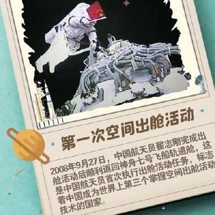 “东方红一号” 卫星成功发射 “1970年4月24日,成功发射第一颗人造地球卫星。“东方红一号”卫星的腾空,在中国航天史上树起了第一个里程碑。 “神舟五号” 遨游太空 “2003年10月15日,“神舟五号”飞船的成功发射,标示着中国成为继俄罗斯、美国之后世界上第三个独立掌握了载人航天技术的国家。 “嫦娥一号”卫星成功发射 “2007年10月24日“嫦娥一号”卫星的成功发射,意味着中国有能力开始对月球进行自主探测。这颗卫星的成功发射,是中国航天史上的第三个里程碑。 中国航天九个第一次 从第一颗人造卫星上天 到第一次载人航天飞行 从第一次登陆月球背面 到首次地外天体采样返回…… 这些具有跨时代意义的“第一次” 见证着中国逐梦航天从不停歇的脚步