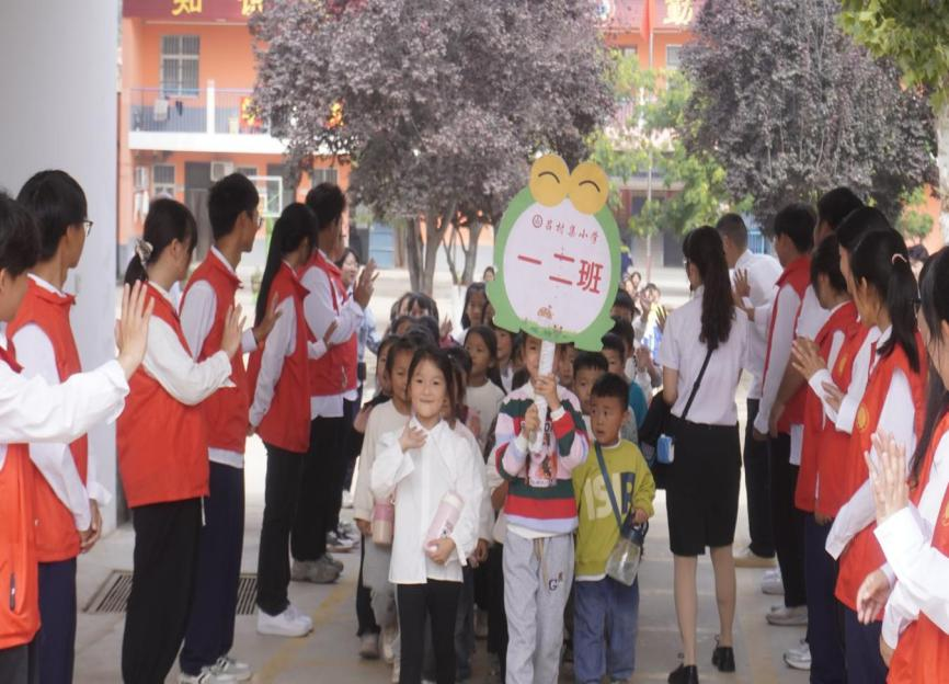 吕村集小学校领导班子和全体师生对志愿服务队的到来表示了热烈的欢迎。校长刘洪吉组织全体教职工和志愿者服务队师生代表进行了友好交流。