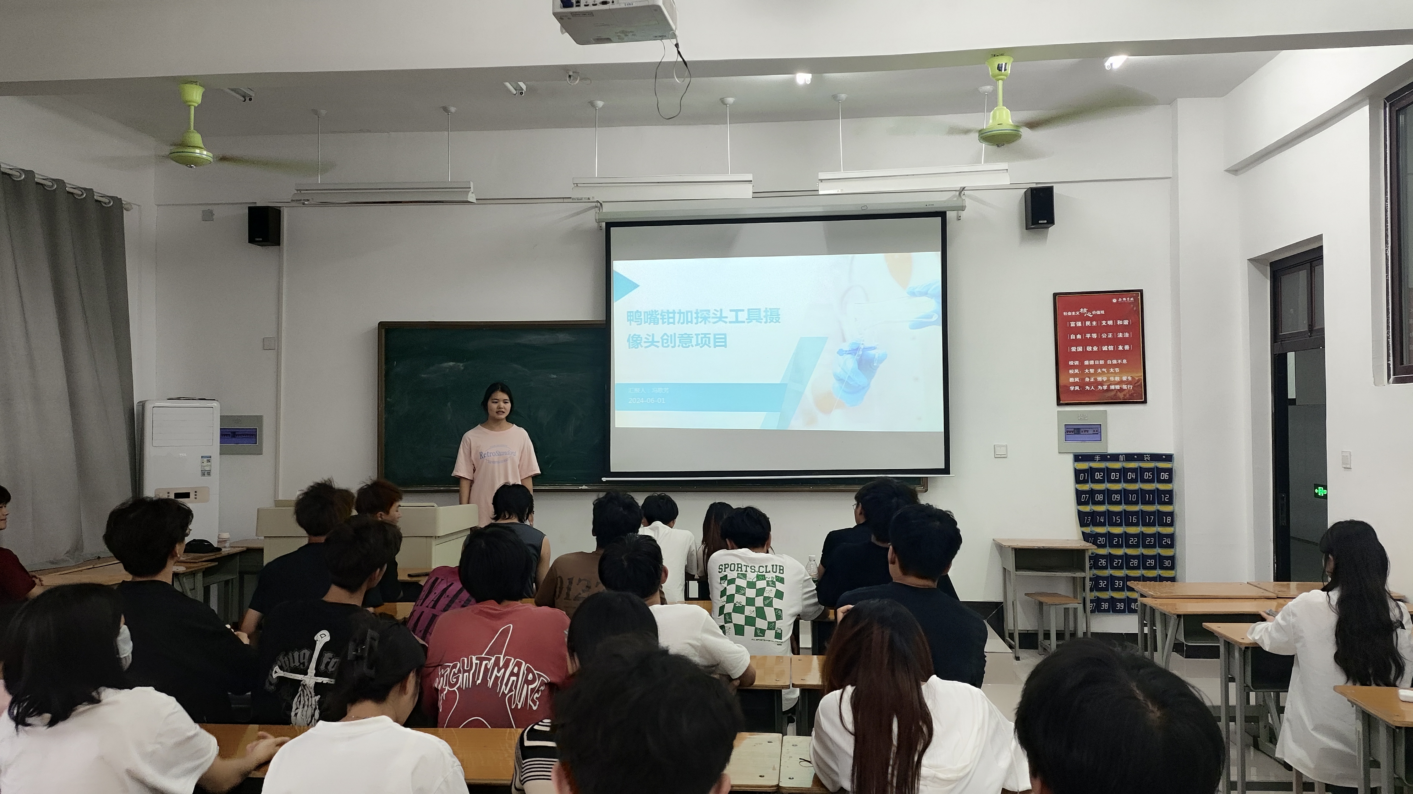 本次比赛由PPT展示和现场答辩两个环节组成,各参赛队伍依次从项目背景、目标市场、竞争优势和产品介绍等方面进行了详细汇报。比赛现场,气氛热烈,各参赛项目代表通过图文演示、现场陈述等方式展示各自的项目成果。评委老师根据各参赛队伍的汇报情况逐一进行点评、提问,并从多个维度进行了评价打分。比赛过程中,各参赛队伍赛出了风采,亮出了新意,展现出了厚实的学科素养和朝气蓬勃的精神风貌;最终评选出“鸭嘴钳加探头工具摄像头”医学创意项目推荐至校赛。