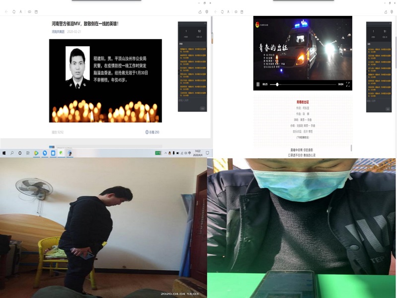 上午10时,全班学生在警报声中低头默哀三分钟。默哀结束后,班长利用直播形式组织班级同学观看了《英雄之城》、《谢谢你,每一个平凡人》、《青春的出征》等视频,共同学习疫情期间那些感人的事迹,以此致敬在疫情中逆行的医护人员。一个个穿着防护服的背影太多,但是他们有一个共同目标——战胜疫情,保护山河无恙。面对疫情,这些普通的身影,以生命,奔赴使命,为他人的命,拼了自己的命。许许多多的面容和身影定格在这些日子里,他们不只是一个数字、一个名字、一块碑,每一个逝者的过往,都是生者的哀思。