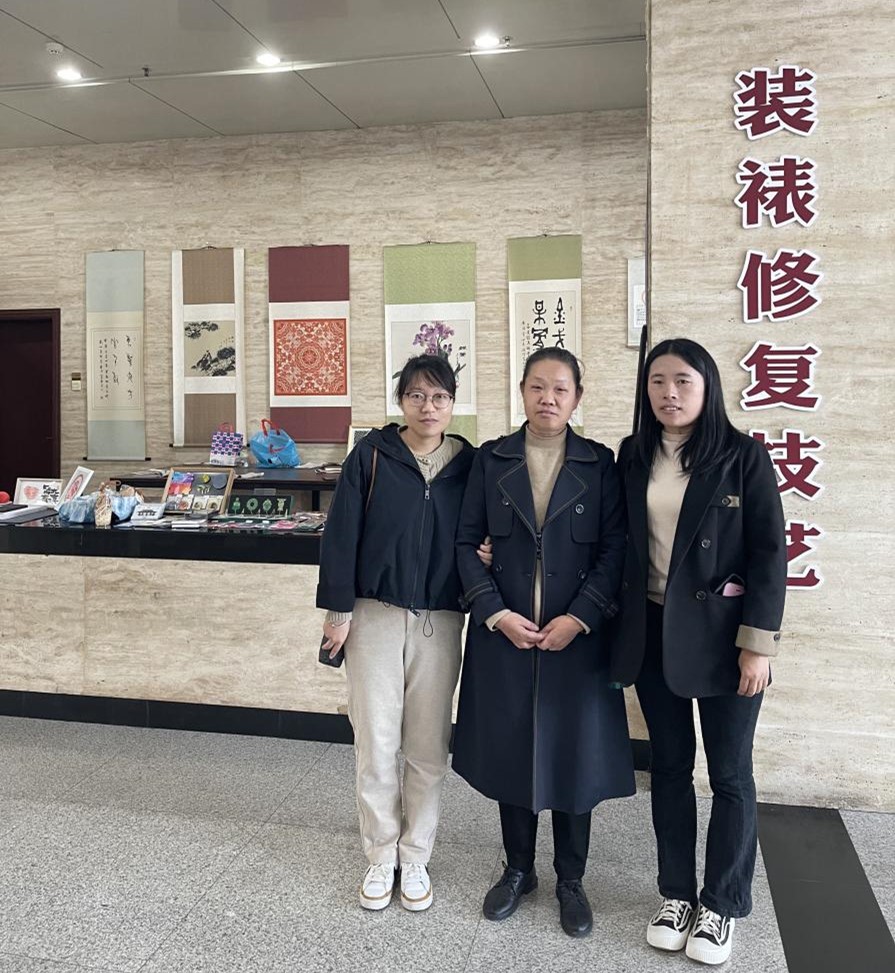 活动中,美术学院教师们首先参观了安阳纸如初文化传播有限公司位于安阳市博物馆二楼东侧的非遗大工坊,全面了解了书画修复与装裱技艺的全过程。在非遗大工坊内,安阳市非物质文化遗产装裱修复技艺传承人王国英老师热情接待了王欢欢主任一行。王国英老师以其深厚的文化底蕴和精湛的技艺,展示了书画修复与装裱的全过程,从选材、设计、修复到装裱,每一步都充满了匠心与智慧。