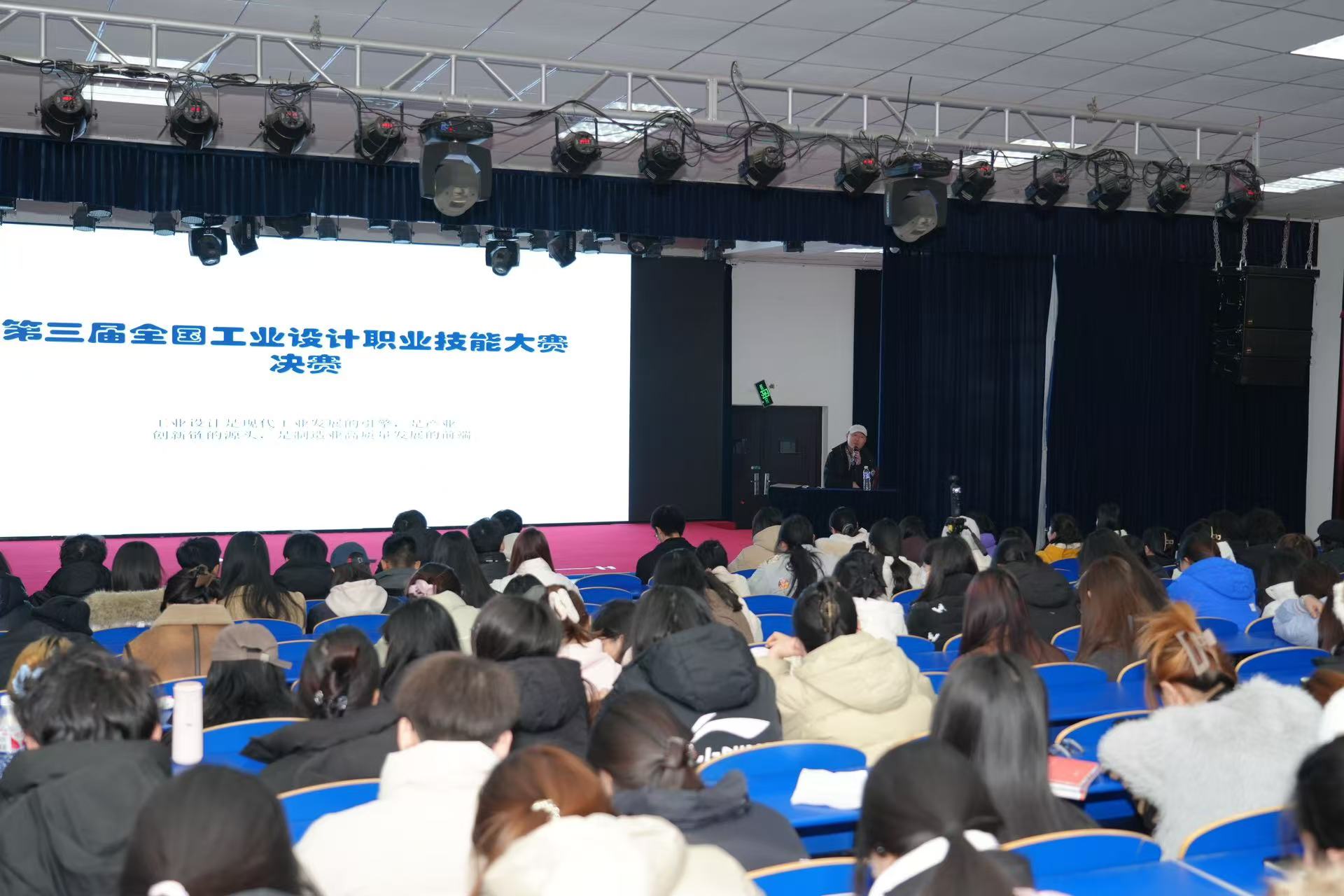 讲座结束后美术学院副院长邢博上台进行了总结发言,并提出,鼓励美术学院的各位老师及各专业的同学们都能积极参与比赛,不断拓宽自己的经验丰富自己的内涵,未来,希望老师们在比赛中学习成长,将更先进更成熟的竞赛成果融入教学实践活动中,进一步丰富教学成果;同学们在比赛中锻炼自我,提高自信,明确自我成长与发展。
