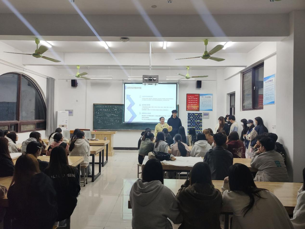 会上,各班辅导员通过案例分享,播放国家安全部公布的“在校生被境外组织策反”警示教育片,让同学们认识到提高法律意识和信息甄别能力的重要性。随后,各班组织开展了互动问答与情景模拟活动。活动围绕反诈防谍、数据安全、生态保护等主题设置情景,各班生活委员组织模拟不同应急场景,强化学生应对突发安全事件的能力。最后各班辅导员强调国家安全教育需理论与实践并重,切实提升学生风险防范意识和应急处置能力。