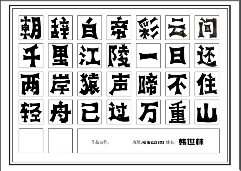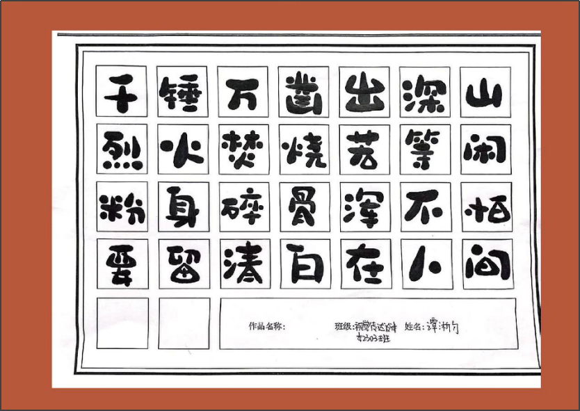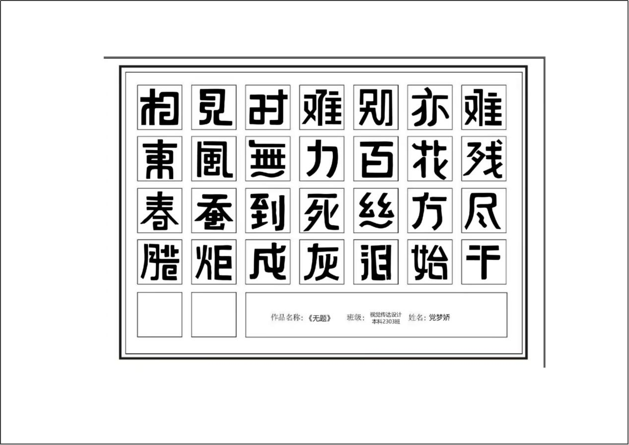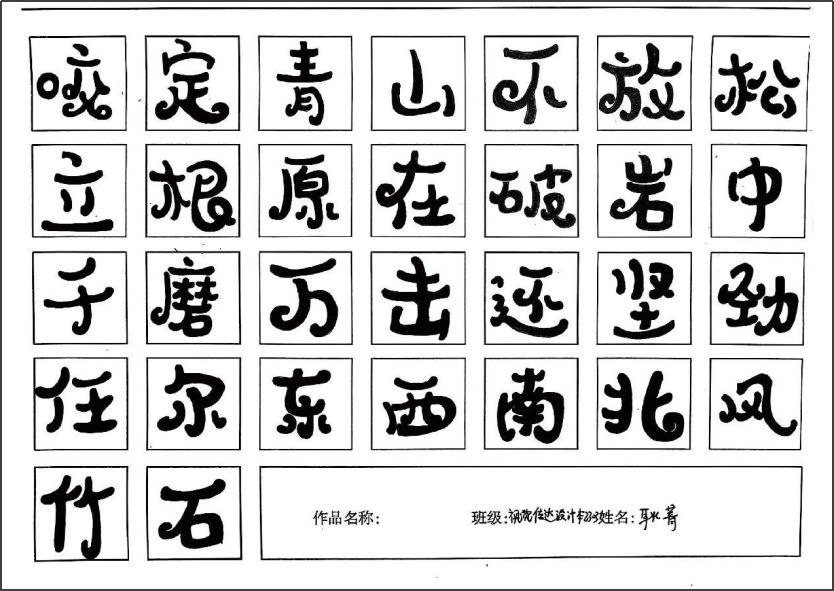 《字体设计》课程是视觉传达设计专业中一门拓展专业课程。字体设计是视觉传达设计专业必修课。通过本课程的学习,能够使学生了解并掌握字体设计的设计方法和设计规律,提高创意能力与审美素养,为之后的相关设计课程做好充分的准备。通过本课程的学习,使学生了解字体设计基本概念和字体的基本功能;了解字体的发展简史及字体的类型,掌握字体绘写的基本方法与要求及字体设计的方法与技巧。培养学生的专业素质,使学生充分认识字体设计在商业设计中的重要性,和字体设计未来发展的趋势。