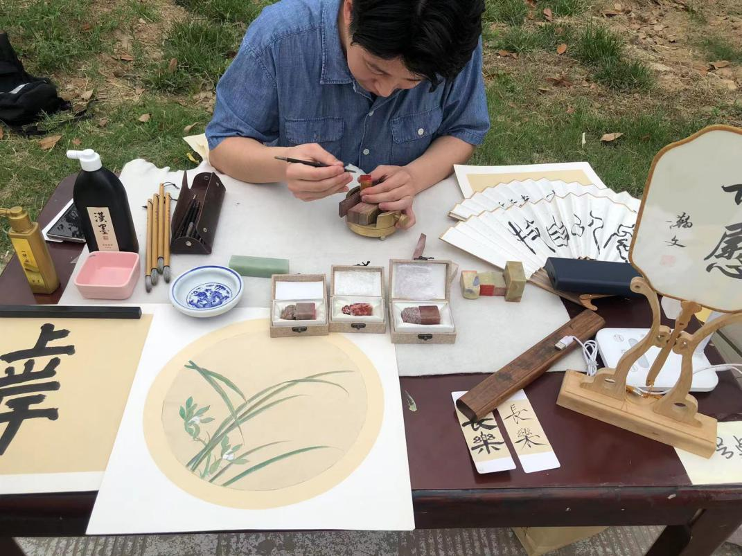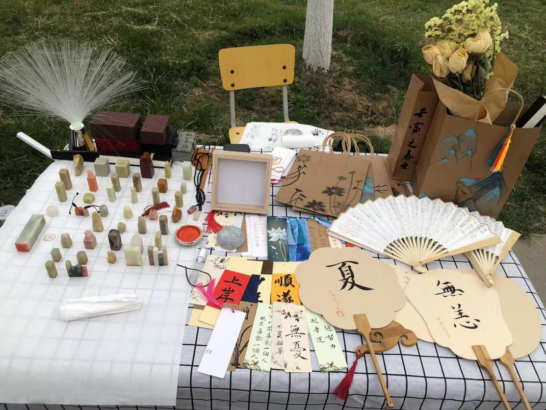 据悉,本次活动以市集的形式展示了包括千鸢锁画、肌理装饰画、书法雕刻、衍纸工艺、陶艺制作、手工扇面、竹编灯笼在内的二十余类艺术作品。学校美院学子扬专业之所长、用专业之所学,展示风采、挥洒创意,为师生们提供了一场精彩的艺术盛宴。