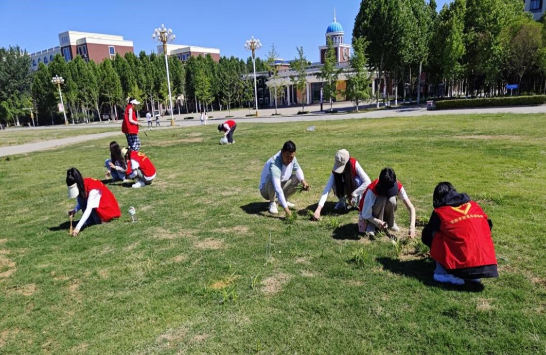 活动伊始,美术学院学生党支部书记任飞带领学生志愿者准时到达集合地点,并进行动员讲话。他表示,新时代青年大学生应坚持全面发展,希望大家通过本次“平凡的一天”绿化劳动岗位体验活动,自觉树立起正确的劳动价值观,崇尚劳动、尊重劳动、热爱劳动,将劳动最光荣、劳动最崇高、劳动最伟大、劳动最美丽的理念扎根于心。随后,校总务部任欢强老师对此次活动做出统筹部署,将志愿者划分若干小组,在各自指定区域开展校园除草工作。活动过程中,带队老师与同学们以饱满的热情投入到除草活动中,切身体验劳动者的快乐与意义。面对横生的野草,大家自觉弯下腰来,分工明确,配合默契,干劲十足,用实际行动诠释了青年师生不怕脏、不怕苦、不怕累的精神。活动最后,总务部任欢强老师对同学们的劳动成果表示了肯定,希望大家今后能以劳动之心,激时代之潮,用实际行动践行劳动精神,以奉献精神诠释责任担当,在劳动奉献的实践行动中厚植爱国爱党爱校情怀。
