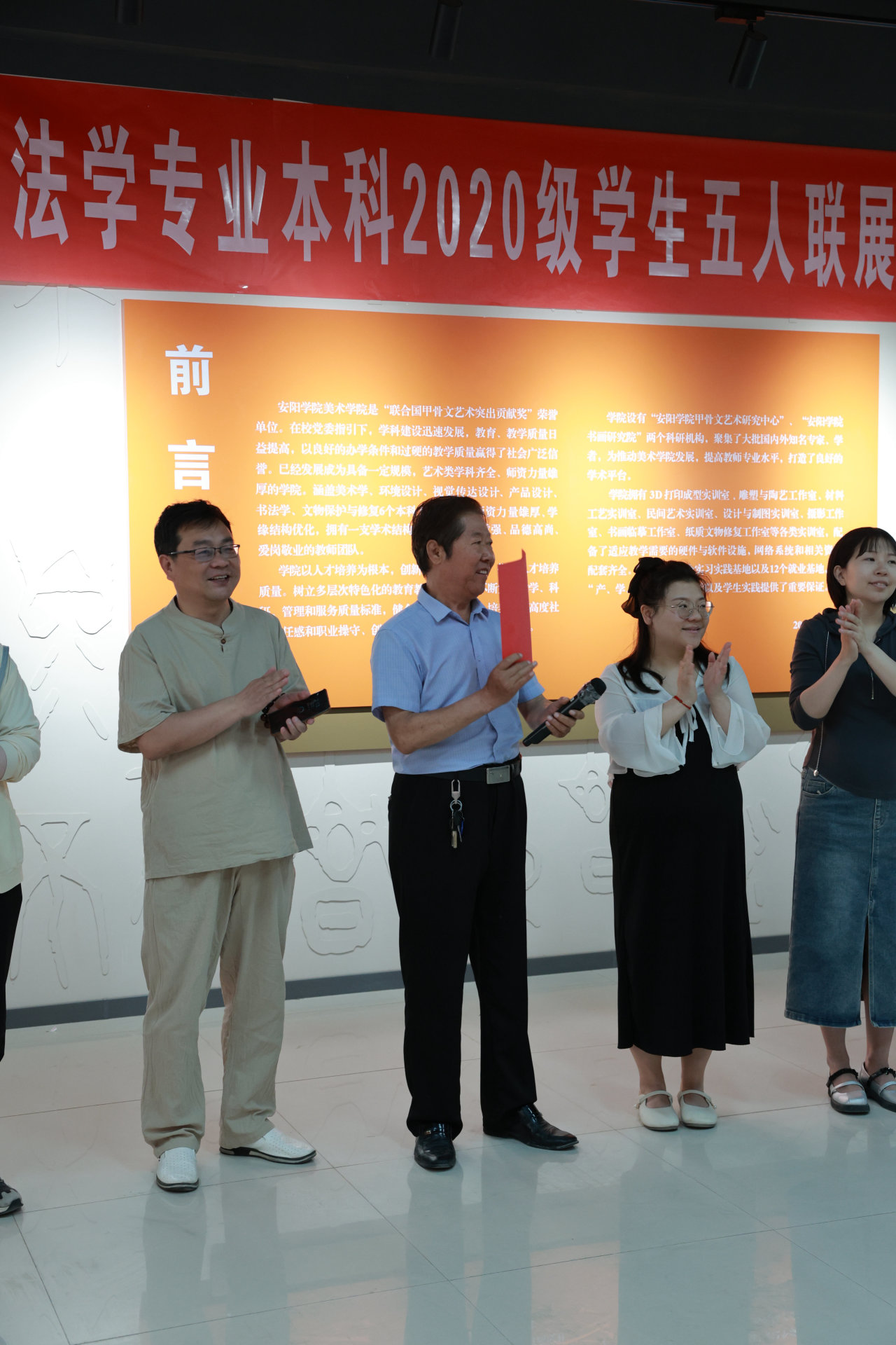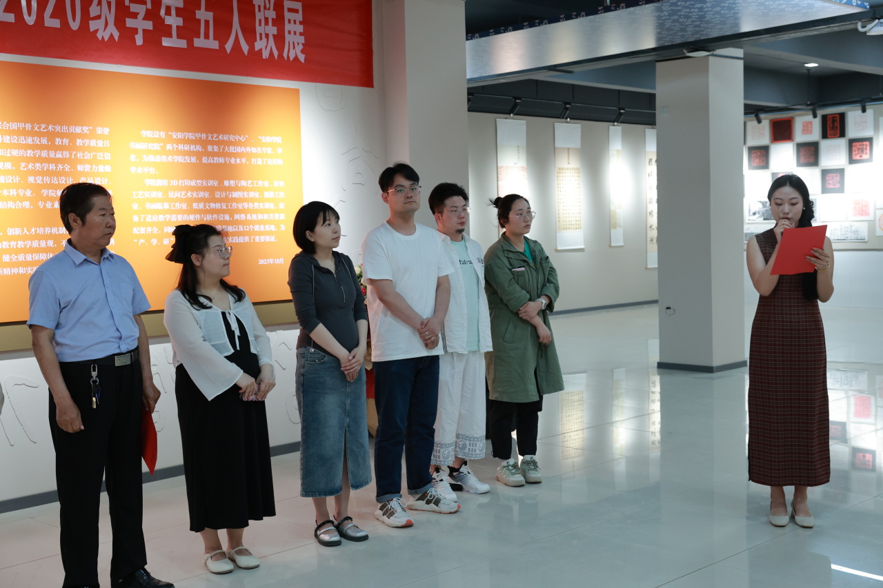 这次书画展览得到了院领导的大力支持,得到了文峰区书协的密切关注。画展开始,由书法教研室主任庞晶晶老师致辞,安阳依山傍水、历史悠长,文明从这里传播,汉字从这里远航,汉字之美也从这里走向世界、享誉全球。本次书法展必将为我院书法事业的繁荣发展注入新的活力。