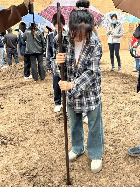 学生练习使用考古工具洛阳铲