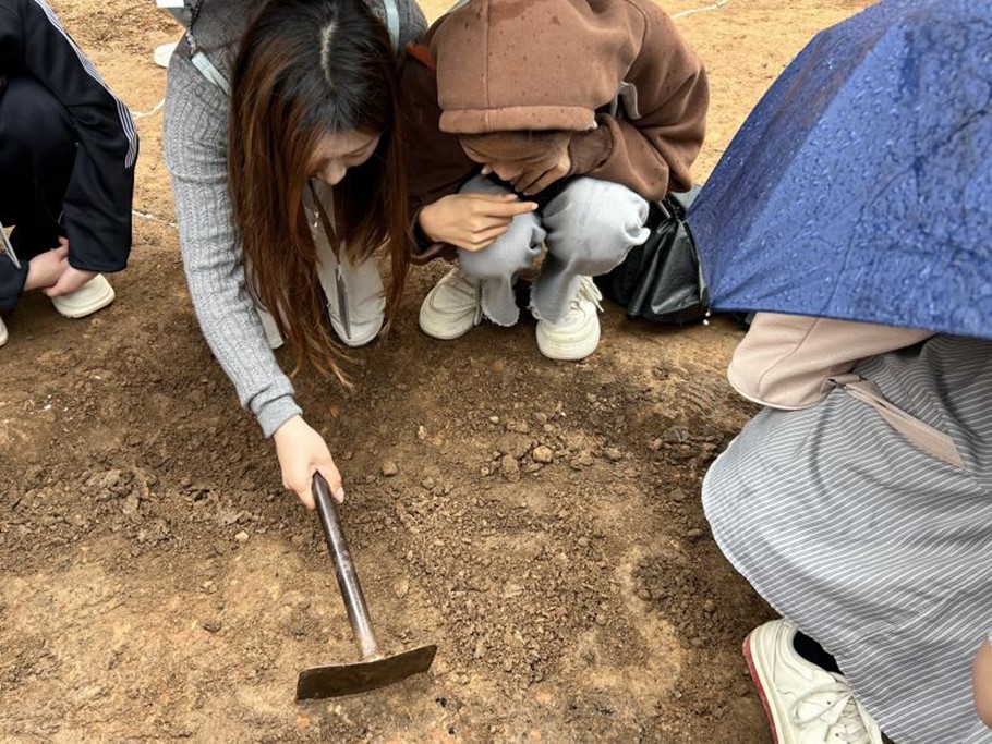 学生练习使用考古工具手铲