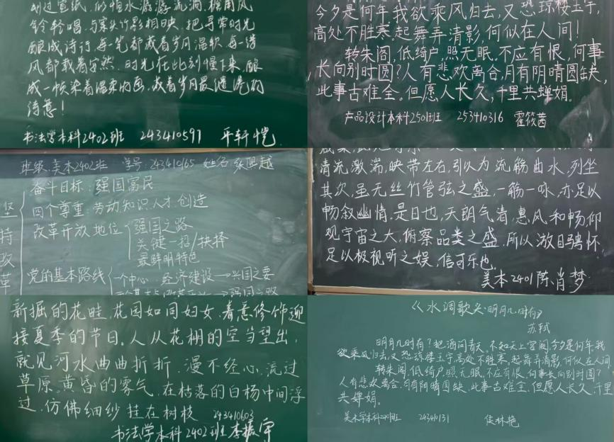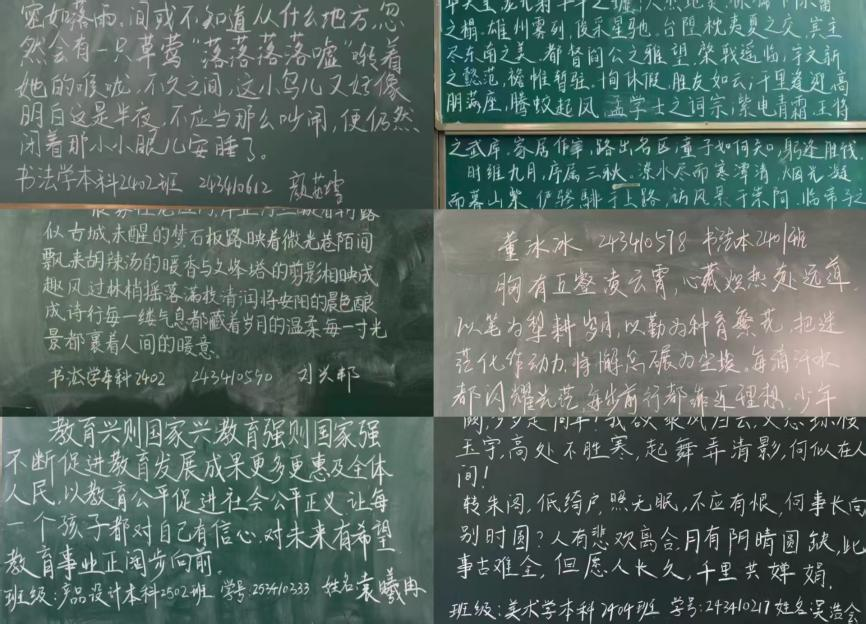 美术学院始终高度重视师范生培养工作,持续创新人才培养模式,聚焦提升师范生综合素养与实践能力。本次板书比赛的成功举办,不仅为学子搭建了展示专业能力、交流教学心得的平台,更强化了同学们对教学基本功训练的重视程度,对提升我院师范生教育教学水平、推动优良学风建设起到了积极的促进作用。未来,学院将继续以学生发展为核心,深化教育教学改革,为培养更多适应新时代教育发展需求的优秀美术教师而不懈奋斗。