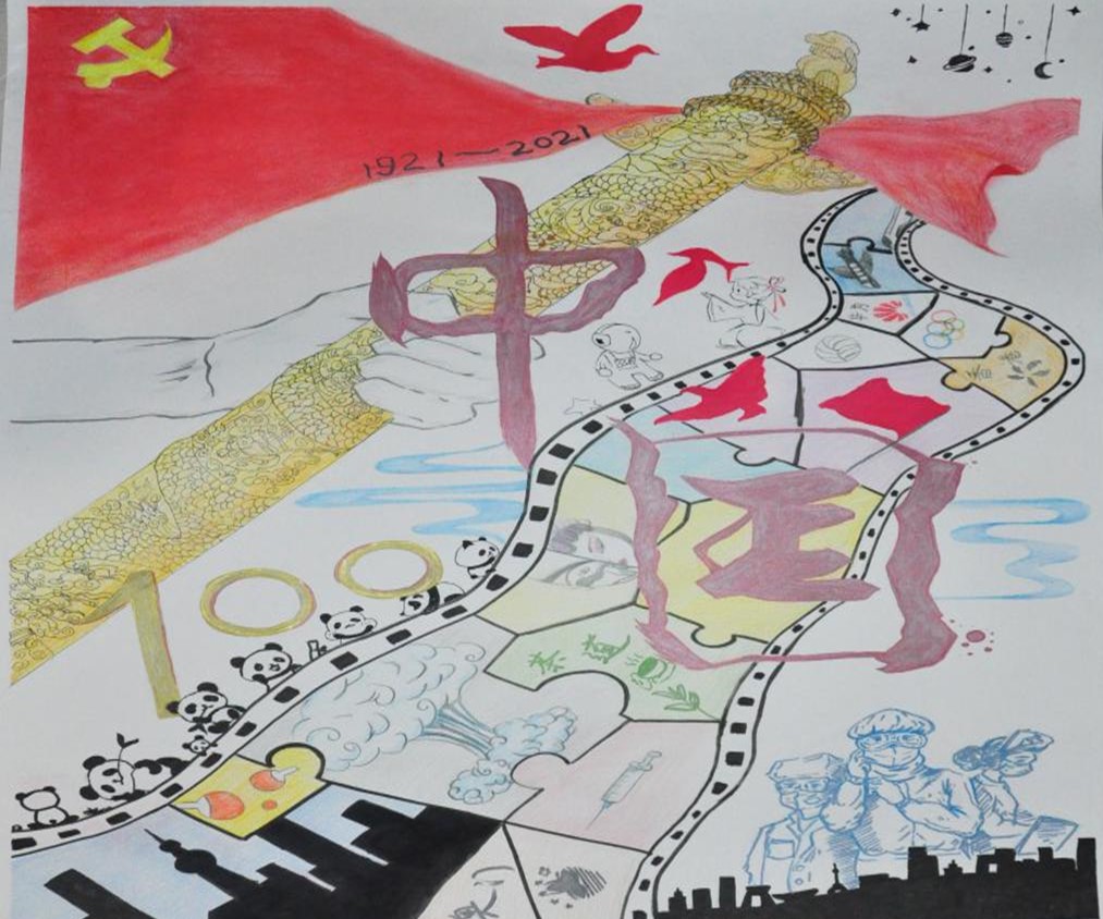 本次活动旨在引领同学们积极响应并参与党史教育活动,引导大学生加强对党史的了解。在这次主题海报征集活动中,美院师生发挥所长,创造出具有时代意义的作品,讲述着党在历史中创下的辉煌成绩,加深了同学们对党辉煌成就的印象。我院学生结合专业所学,手握画笔,用一幅幅画卷,绘出了党史百年的辉煌成就,进一步加深了大家对党的百年历史、开展党史教育的重大意义和目标要求的理解认识。