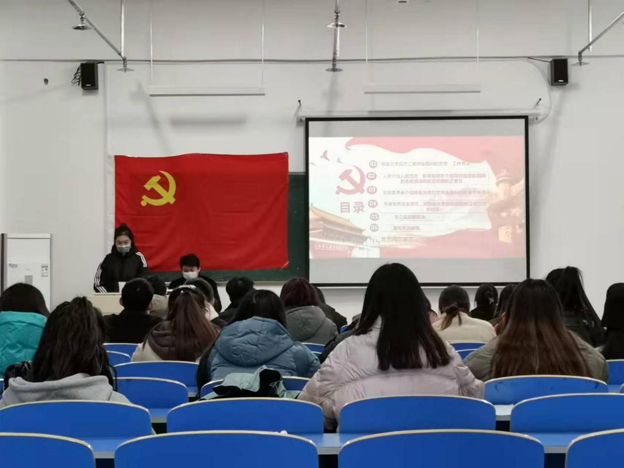 为了进一步加强基层党组织建设,落实党支部发展党员工作计划,2021年11月20日下午7:30,美术学院党支部在T413召开了预备党员接收大会。本次会议由学生第一支部书记张珺瑶和学生第二支部书记路艺方主持,支部全体党员、34位发展对象参加。