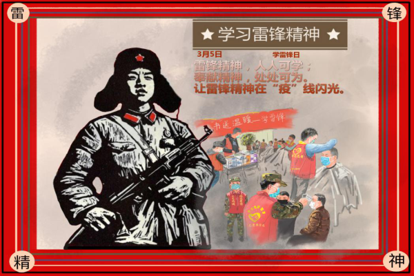 己亥岁末、庚子之初,新型冠状病毒感染的肺炎疫情给人们的身心和生活带来了不利的影响。面对病魔,全国上下团结一心,同舟共济,共同战“疫”。2020年3月5日-15日,我院积极组织开展以“弘扬雷锋精神”为主题的线上作品征集活动。
