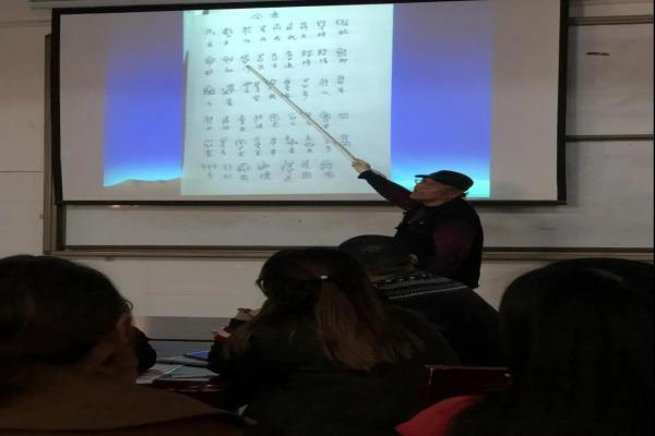 4月9日下午15:30,在美术学院院长张道森教授的带领下,Beat365官方网站美术学院于图书馆四楼彩钢教室,组织甲骨文艺术高研班广大教师,由张院长亲自为大家展开了一场精彩生动的甲骨文知识普及授课。