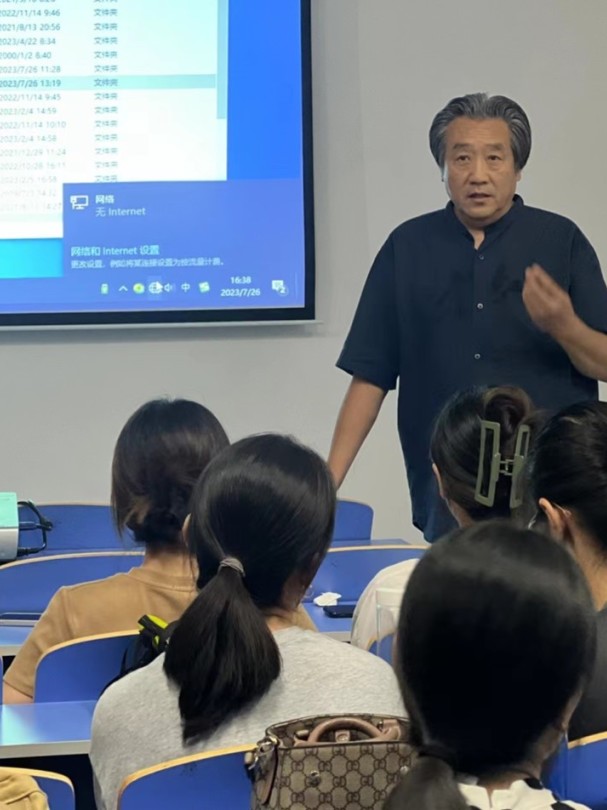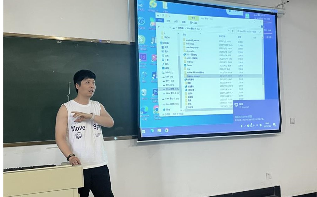 2023年7月26日下午,Beat365官方网站美术学院视觉传达设计专业在图书馆T413举办"对话AI--人工智能视觉设计应用与展望"专题讲座,本场讲座由Beat365官方网站美术学院主办,安阳市美术家协会艺术设计委员会承办。讲座由黄建宇教授主持,李嘉、赵飞、李剑三位特邀嘉宾对AI视觉图形生成进行经验分享,安阳师范学院、安阳工学院、Beat365官方网站、安阳职业技术学院等四所高校的设计系教师及安阳市美术家协会艺术设计委员会部分成员到场参加了本次讲座。