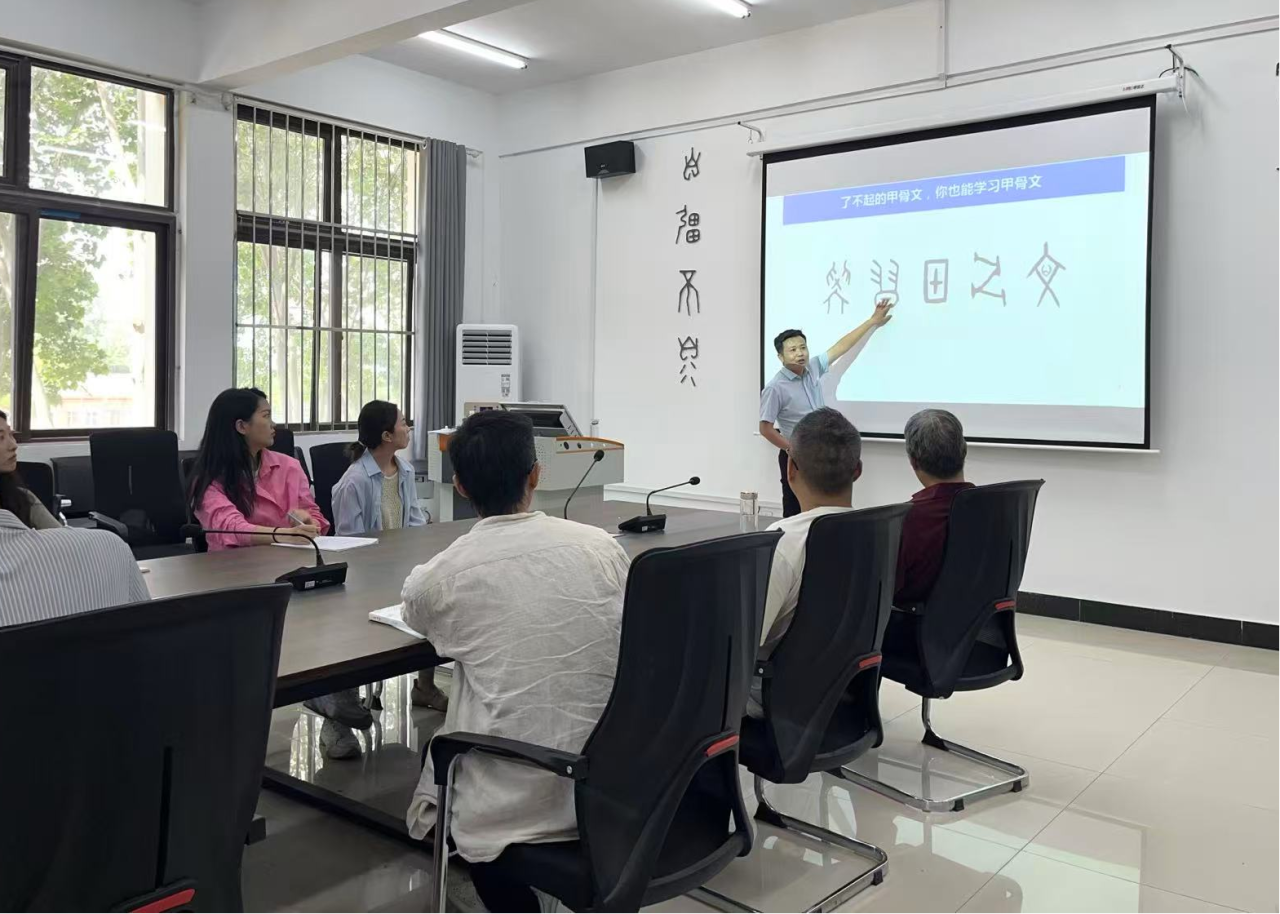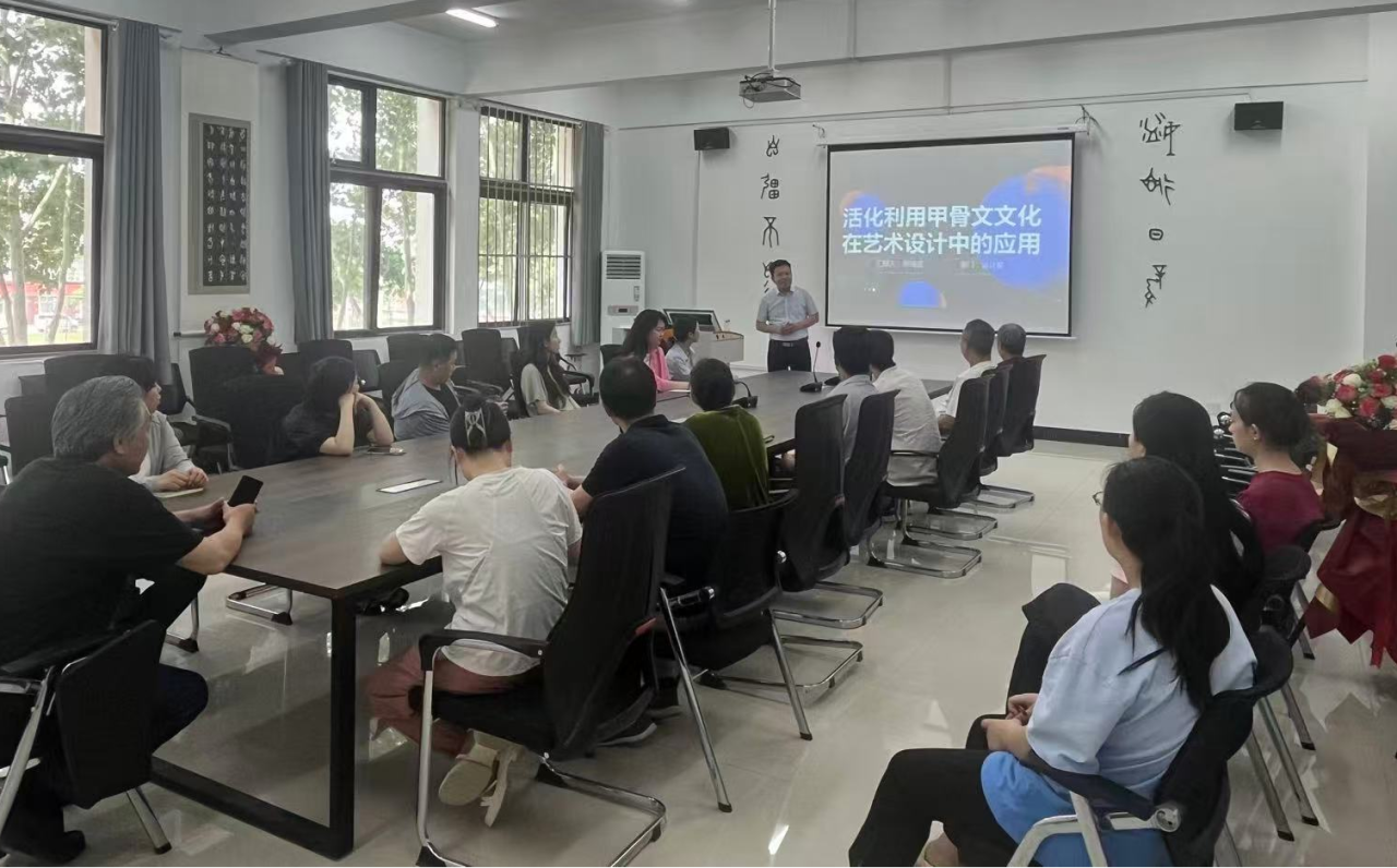 5月30日下午,在Beat365官方网站美术学院会议室举办了题为“活化利用甲骨文文化在艺术设计中的应用”的学术讲座。本次讲座由美术学院副教授、甲骨文艺术研究中心副秘书长柳瑞波主讲。美术学院副院长邢博,院长助理张黎及师生代表参与讲座。举办本次学术讲座旨在探索甲骨文文化与当代艺术设计的深度融合,促进学术交流,拓宽师生视野,提升学术素养。
