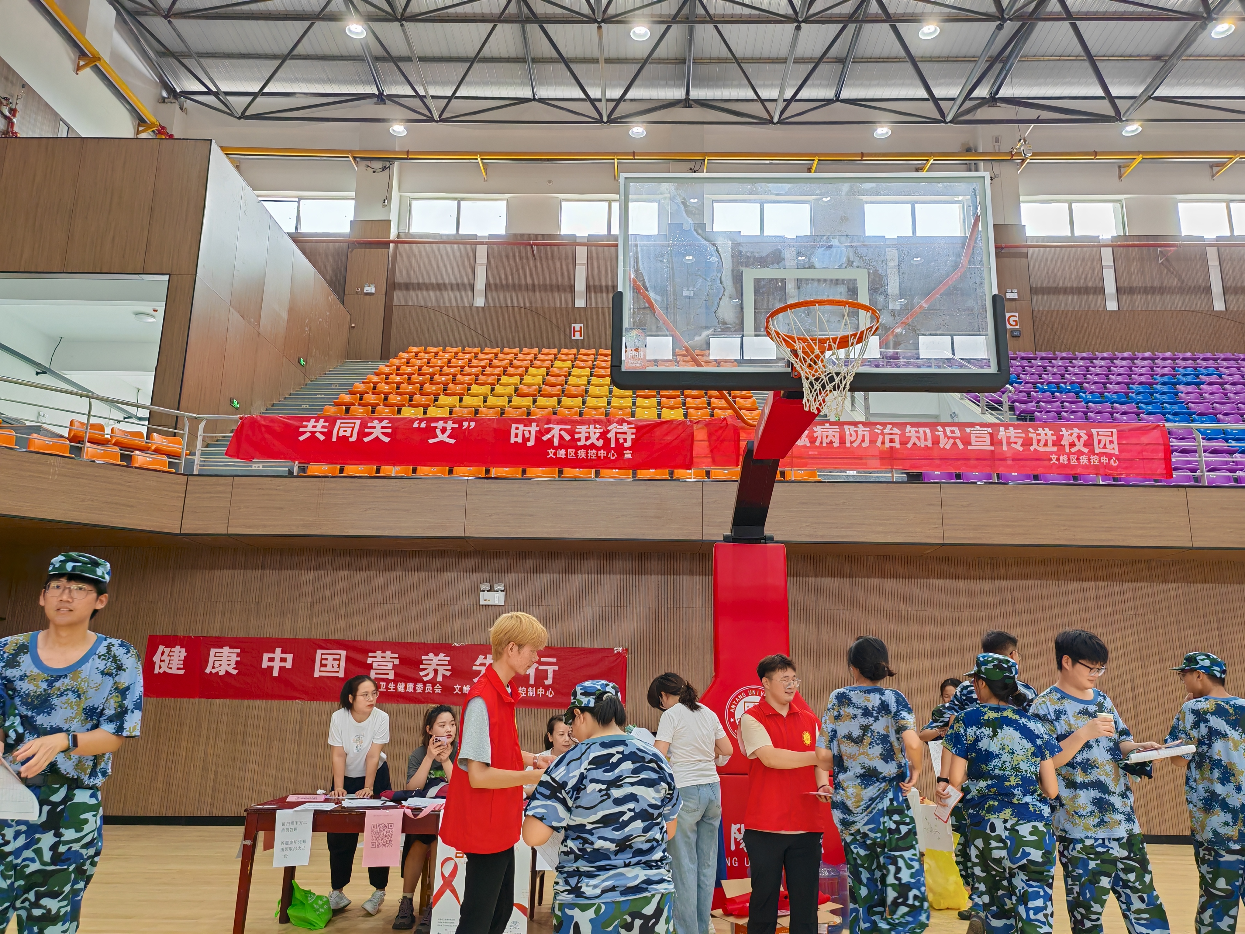 9月5日,为进一步提升了学生防范艾滋病的能力和自我防护意识,膳食服务中心联合文峰区疾控中心在体检现场开展了“美好青春我做主 艾防知识进校园”主题宣传活动。工作人员一边发放宣传资料和小礼品,一边耐心解答大家的疑问,向他们普及艾滋病致病原因、传播途径、临床症状、严重危害和预防措施等防治知识,为大家上好“健康第一课”。