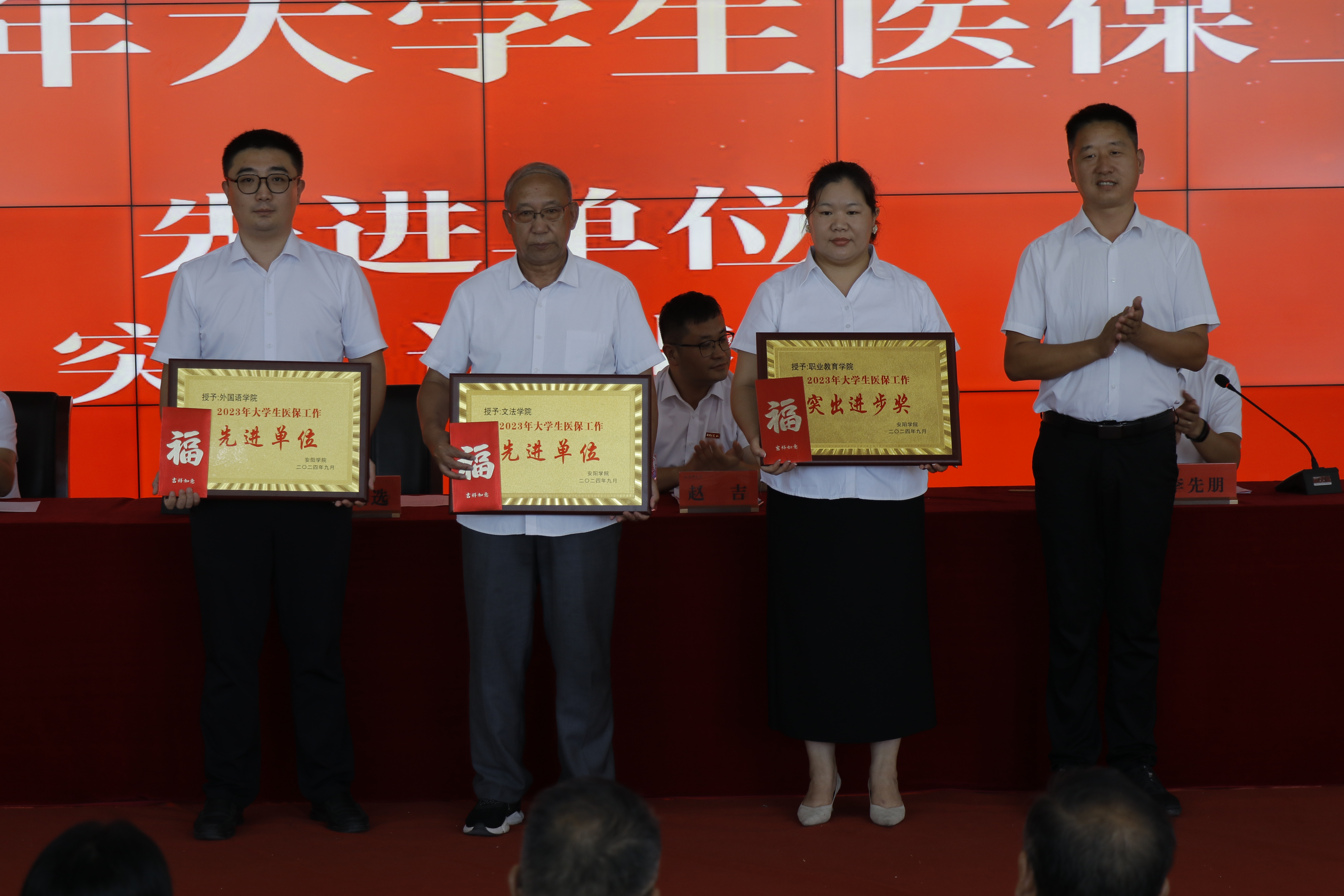 副校长张明选为获奖单位和个人颁奖,并作讲话。他对大学生医保工作提出三点要求:一是要提高政治站位,加强大学生医保工作重视程度;二是要牢固树立责任意识和底线思维,主动作为,及时沟通解决工作中的问题,确保各项政策保障措施落地见效,切实保障学生的医疗权益;三是要充分发挥职能联动作用,做好政策宣传引导工作,提高学生参保意识,保证“应参尽参,应保尽保”;各相关单位要通力协作,不断完善工作流程,做好医保管理和服务,为学校安全稳定做出应有的贡献。