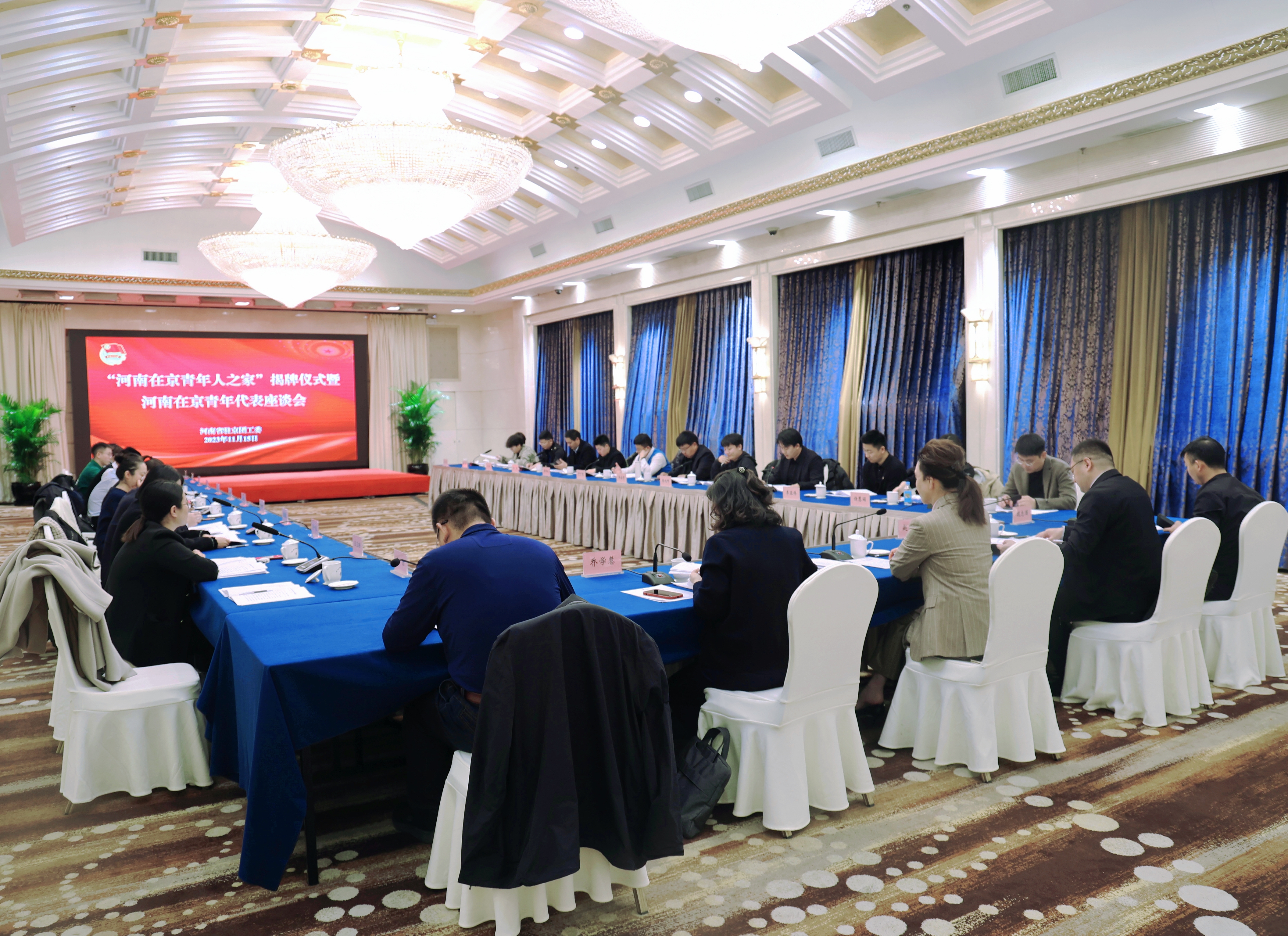 为深入学习贯彻习近平总书记重要讲话精神,进一步引领凝聚在京青年、组织动员在京青年、联系服务在京青年,增强服务青年工作的主动性和灵活性,为首都和河南经济社会发展贡献更多力量,11月15日上午,河南在京青年代表座谈会暨“河南在京青年人之家”揭牌仪式在北京河南大厦举行。河南省驻京办、团河南省委、团北京市委有关负责同志,河南驻京团工委委员、地市驻京团工委、京豫优秀青年创新创业联谊会以及高校青年代表参加活动。