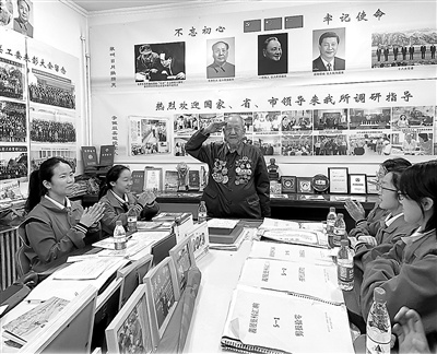 郑州市第五十七中学组织开展寻访老战士活动。图为学生在郑州市空军干休所听老战士讲革命故事。 资料图片