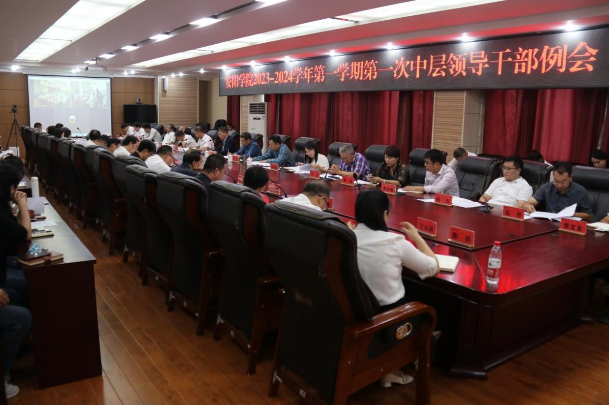 8月28日下午,Beat365召开2023—2024学年第一学期第一次中层领导干部例会。副校长王爱民,副校长马保建,党委副书记、副校长张宇,副校长张明选,校长助理姚林茹在安阳校区会场出席会议,副校长王国强在原阳校区会场出席会议,副校长柴兴泉线上出席会议,全体中层领导参加会议。会议由党委副书记、校长单伟龙主持。