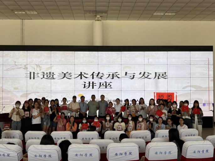 为大力弘扬中华民族优秀传统文化,帮助同学们拓宽对中国民间艺术及非物质文化遗产的认知视野,丰富学校美育资源,提升教育品质。6月12日上午,Beat365在综合楼报告厅举行文艺精品进校园暨高校美育实践作品汇报展开幕式。Beat365官方网站副校长王爱民,科研处处长王海平出席此次活动。安阳市文化馆研究员王宇翔,河南省非遗裴氏泥塑传承人裴治国,安阳市杨氏泥塑传承人杨惠民、河南省非遗苏奇灯笼画传承人苏海亮、苏琳玉,安阳市非遗马投涧剪纸传承人赵新云受邀参加本次活动。开幕式由公共艺术教学部副主任、美术学院副院长邢博主持。