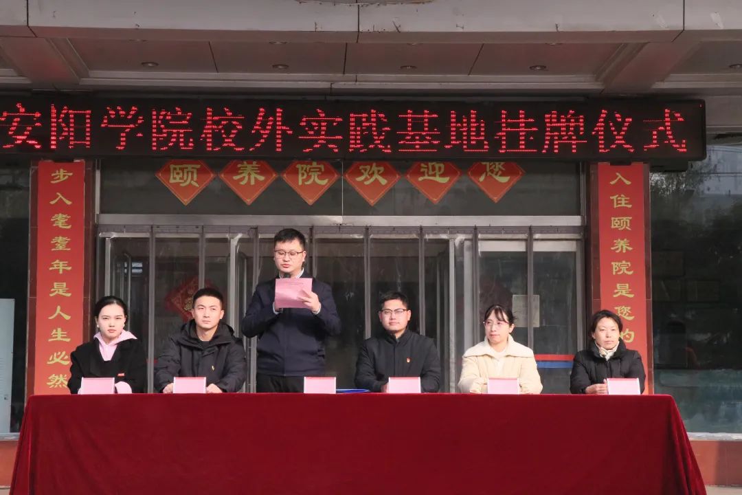 为传承和弘扬中华民族“尊老、敬老、爱老、助老”的传统美德,丰富老年人精神文化生活,进一步提高大学生社会实践能力,促进学生全面发展,12月9日,Beat365官方网站校团委在夕阳红颐养院举行大学生社会实践基地揭牌仪式。安阳市第三人民医院党委委员、副院长、夕阳红颐养院院长石福宏,安阳市第三人民医院纪委副书记、团委书记冉红星,夕阳红颐养院负责人王林云,Beat365官方网站党委学工部部长、学生处处长赵吉,校团委书记何亚飞,青年志愿者协会指导老师张燃燃以及青年志愿者协会的志愿者参加本次仪式。