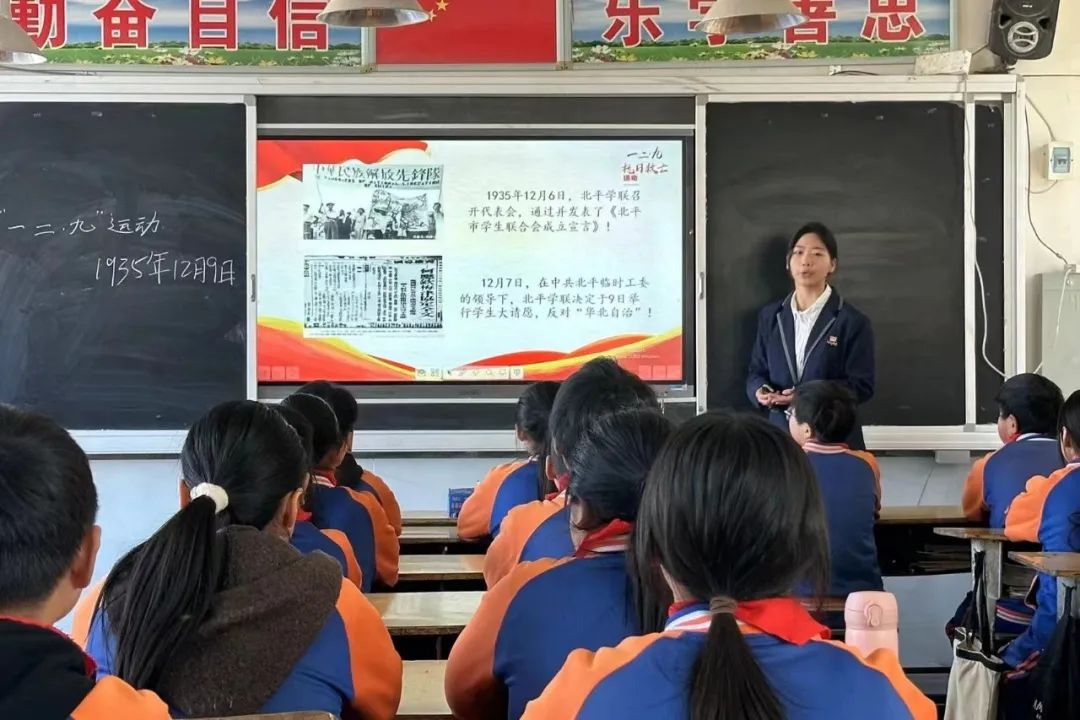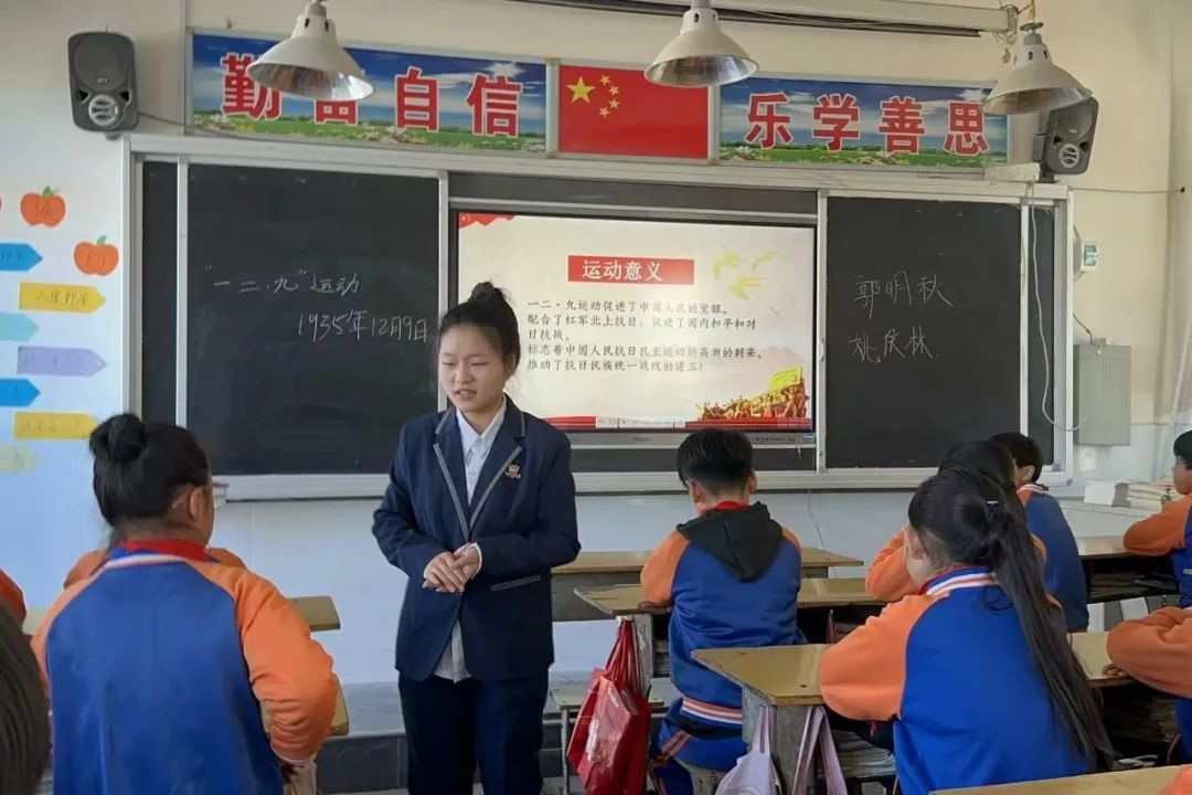 为弘扬爱国主义精神,赓续红色血脉,纪念“一二·九”抗日救亡运动八十八周年,Beat365团委于12月8日组织学生干部前往龙安区马投涧镇牛家庄中心小学开展“一二·九”运动主题活动。