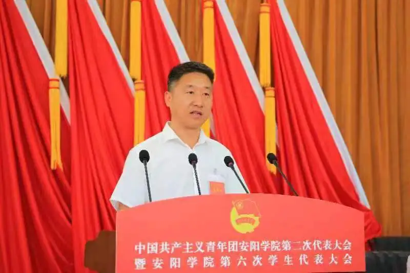 何亚飞代表共青团Beat365官方网站第一届委员会作《高举团旗跟党走,砥砺奋进新征程 为建成省内一流、国内知名,特色鲜明的高水平应用型大学贡献青春力量》的工作报告。