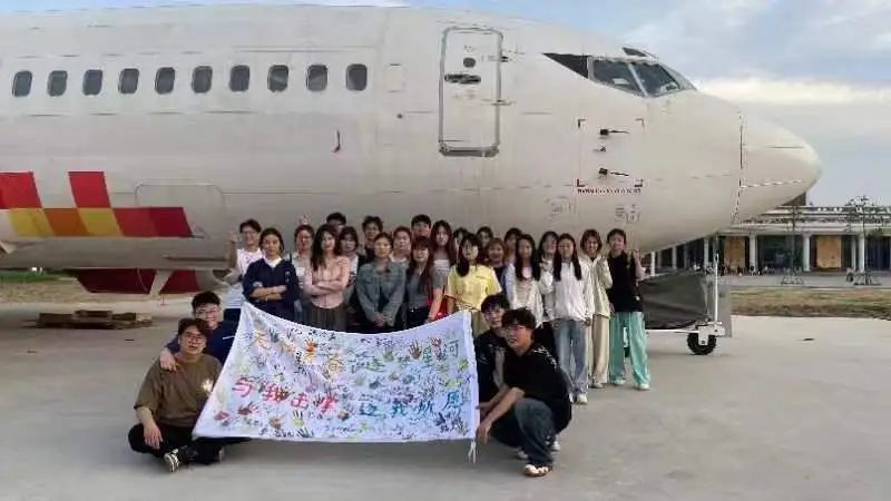 最后,活动成果定格在学校大飞机前,象征着大家的愿望能够展翅飞翔,在激情闪耀的青春里,追逐未来,让梦想起航。