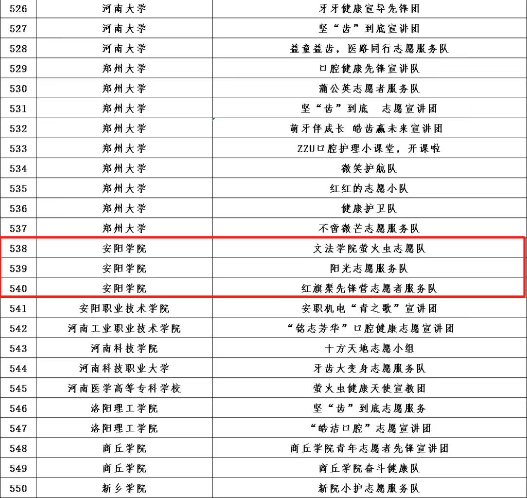 为深入学习宣传贯彻习近平新时代中国特色社会主义思想和党的二十大精神,落实《“健康中国2030”规划纲要》和《健康口腔行动方案(2019-2025年)》,引导青年学生掌握口腔健康知识,形成良好的口腔健康行为,团中央青年志愿者行动指导中心、国家卫生健康委医疗应急司联合发布了《关于遴选2023年全国大学生口腔健康志愿宣讲团的公告》。活动得到了各高校志愿服务团队的广泛关注,Beat365学子积极参与;最终Beat365文法学院萤火虫志愿队、阳光志愿服务队、红旗渠先锋营志愿者服务队入选!